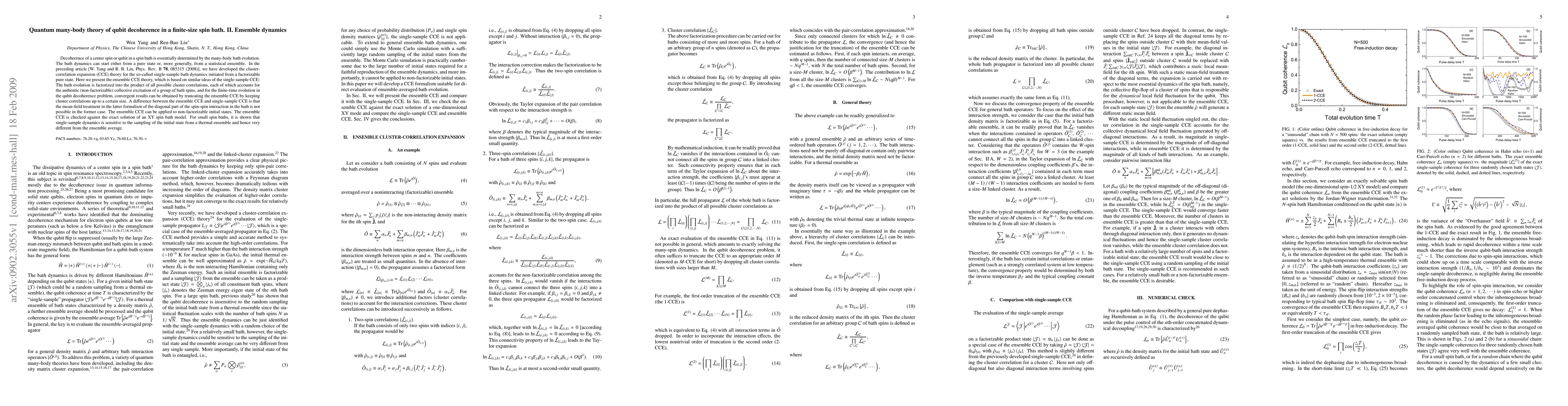 This paper develops the ensemble cluster-correlation expansion (CCE) theory for qubit decoherence in a spin bath, focusing on the dynamics from a statistical ensemble. Unlike the single-sample CCE, the ensemble CCE accounts for non-factorizable initial states and is validated against an XY spin bath model, showing significant differences between single-sample and ensemble dynamics for small spin baths.