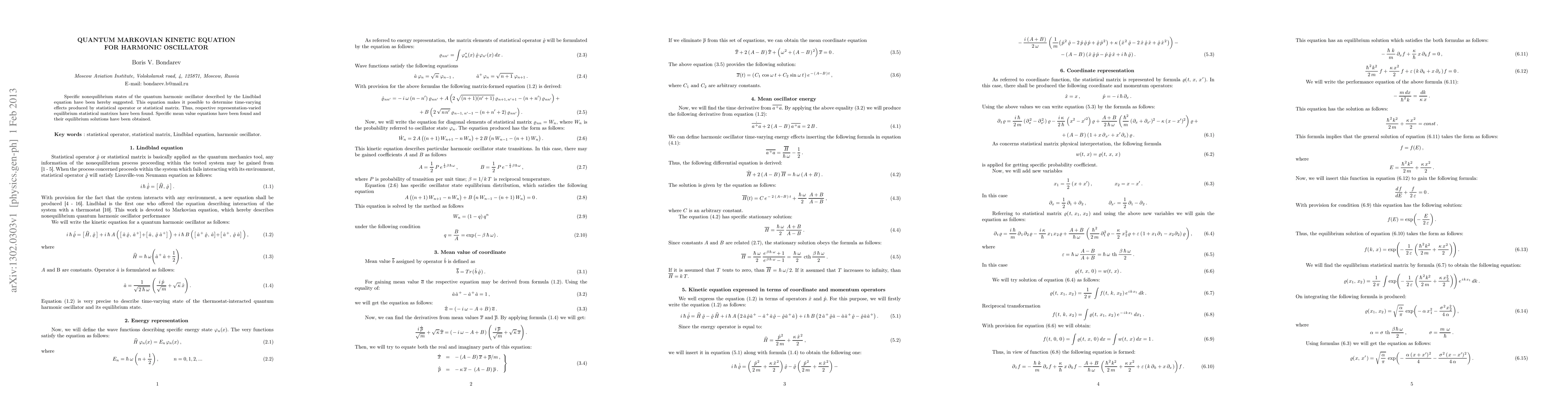 Specific nonequilibrium states of the quantum harmonic oscillator described by the Lindblad equation have been hereby suggested. This equation makes it possible to determine time-varying effects produced by statistical operator or statistical matrix. Thus, respective representation-varied equilibrium statistical matrixes have been found. Specific mean value equations have been found and their equilibrium solutions have been obtained.
