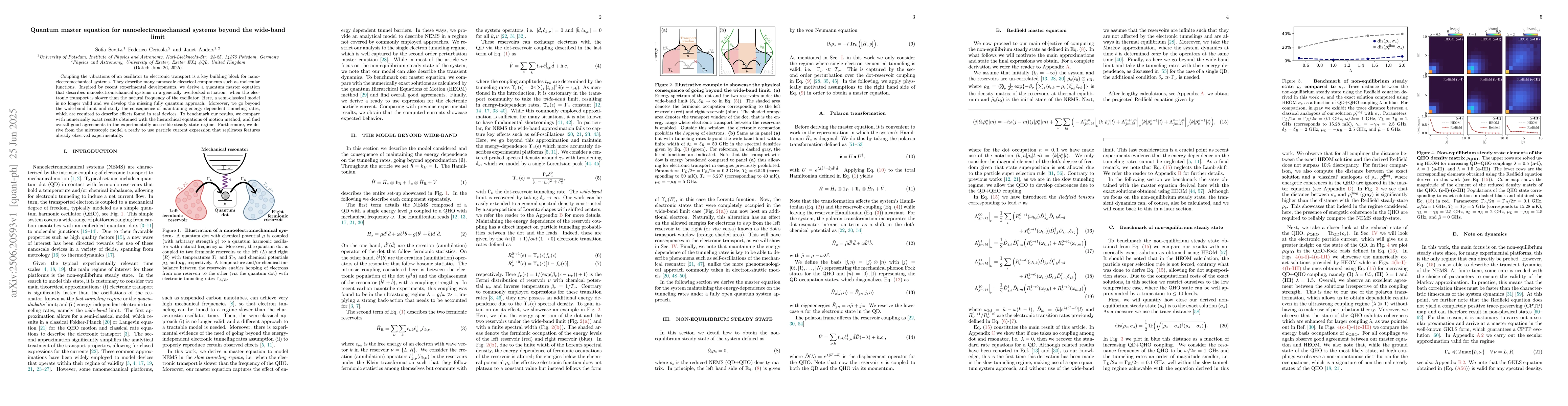 Coupling the vibrations of an oscillator to electronic transport is a key building block for nanoelectromechanical systems. They describe many nanoscale electrical components such as molecular junctions. Inspired by recent experimental developments, we derive a quantum master equation that describes nanoelectromechanical systems in a generally overlooked situation: when the electronic transport is slower than the natural frequency of the oscillator. Here, a semi-classical model is no longer valid and we develop the missing fully quantum approach. Moreover, we go beyond the wide-band limit and study the consequence of maintaining energy dependent tunneling rates, which are required to describe effects found in real devices. To benchmark our results, we compare with numerically exact results obtained with the hierarchical equations of motion method, and find overall good agreements in the experimentally accessible steady state regime. Furthermore, we derive from the microscopic model a ready to use particle current expression that replicates features already observed experimentally.