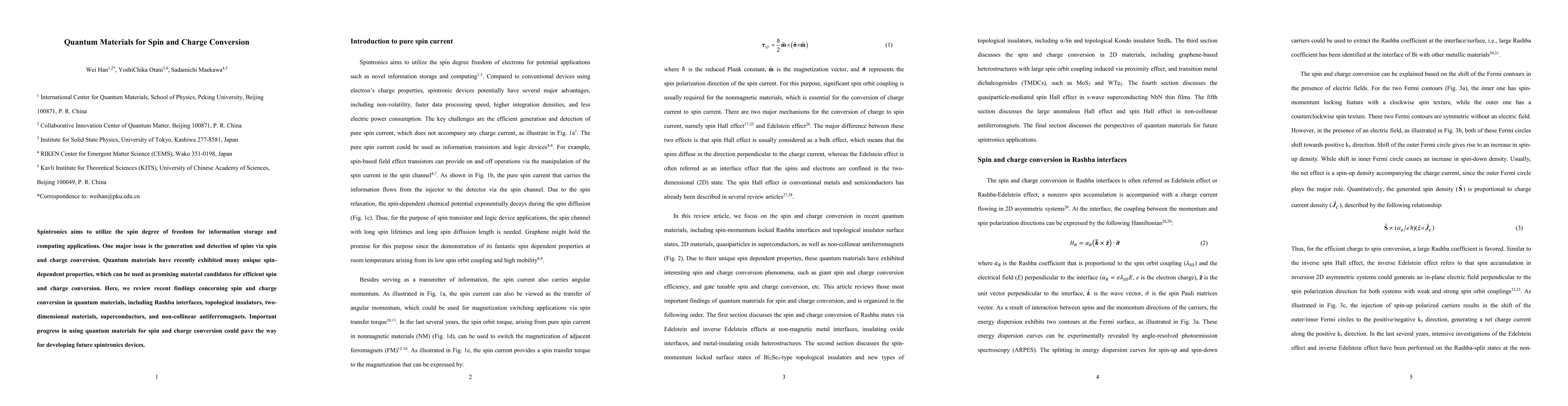 The paper presents a comprehensive review of spin and charge conversion in various quantum materials, emphasizing their unique spin-dependent properties and potential for spintronics.