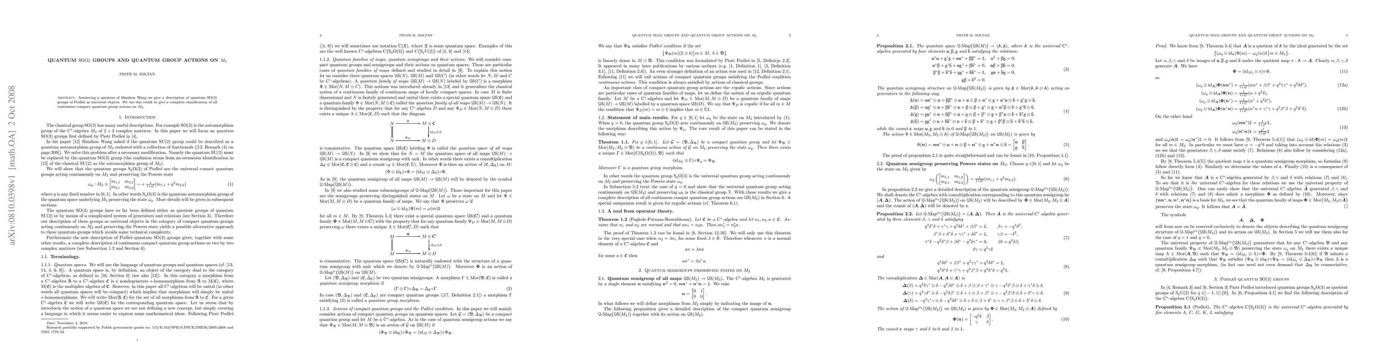 Answering a question of Shuzhou Wang we give a description of quantum $\SO(3)$ groups of Podle\'s as universal objects. We use this result to give a complete classification of all continuous compact quantum group actions on $M_2$.