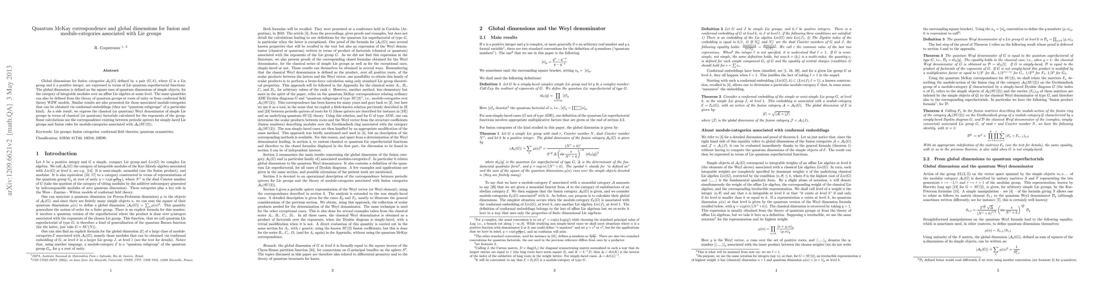 This research paper establishes a connection between Lie groups and fusion categories, expressing global dimensions in terms of Lie quantum superfactorial functions and showing similarities with other mathematical theories.