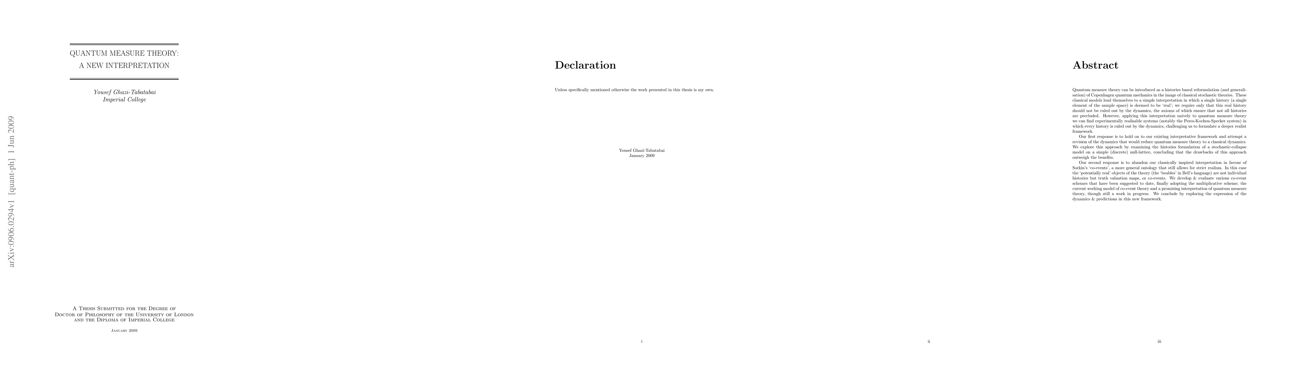 This paper proposes a new interpretation of quantum measure theory by reformulating it as a histories-based generalization of Copenhagen quantum mechanics. It explores revising the dynamics to align with classical stochastic models but finds this approach flawed. Instead, it adopts Sorkin's 'co-events' framework, developing and evaluating various schemes before settling on the multiplicative scheme as a promising realist interpretation of quantum measure theory.