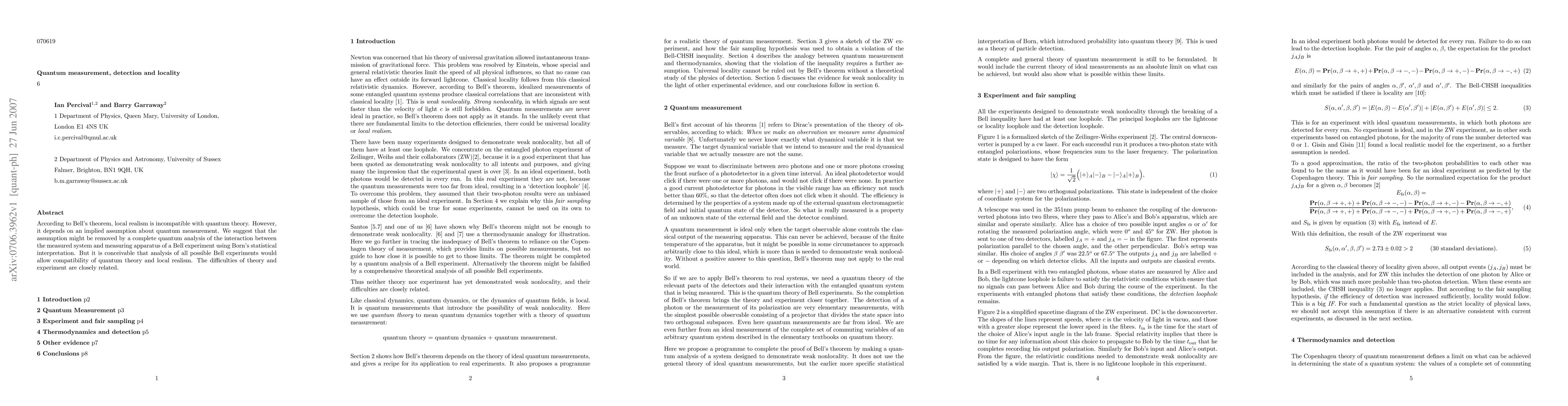 According to Bell's theorem, local realism is incompatible with quantum theory. However, it depends on an implied assumption about quantum measurement. We suggest that the assumption might be removed by a detailed quantum analysis of the interaction between the measured system and measuring apparatus using Born's statistical interpretation. But it is conceivable that detailed analysis of all possible Bell experiments would allow the compatibility of quantum theory and local realism. The difficulties of theory and experiment are closely related.