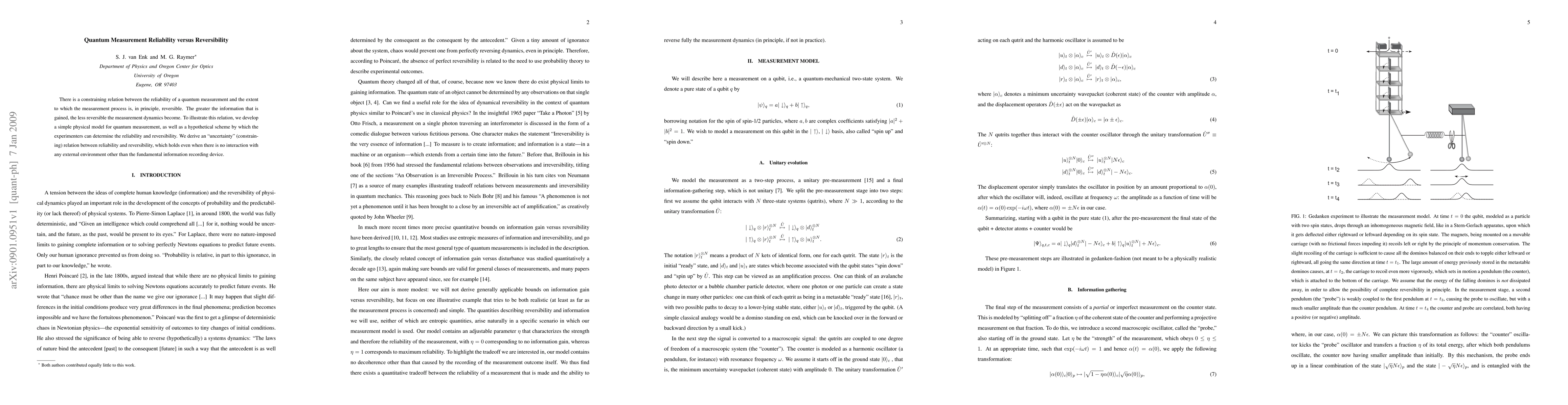 This paper explores the trade-off between the reliability of quantum measurements and their reversibility, establishing a fundamental "uncertainty" relation. It introduces a physical model and a hypothetical scheme to quantify these properties, demonstrating that greater information gain reduces reversibility.