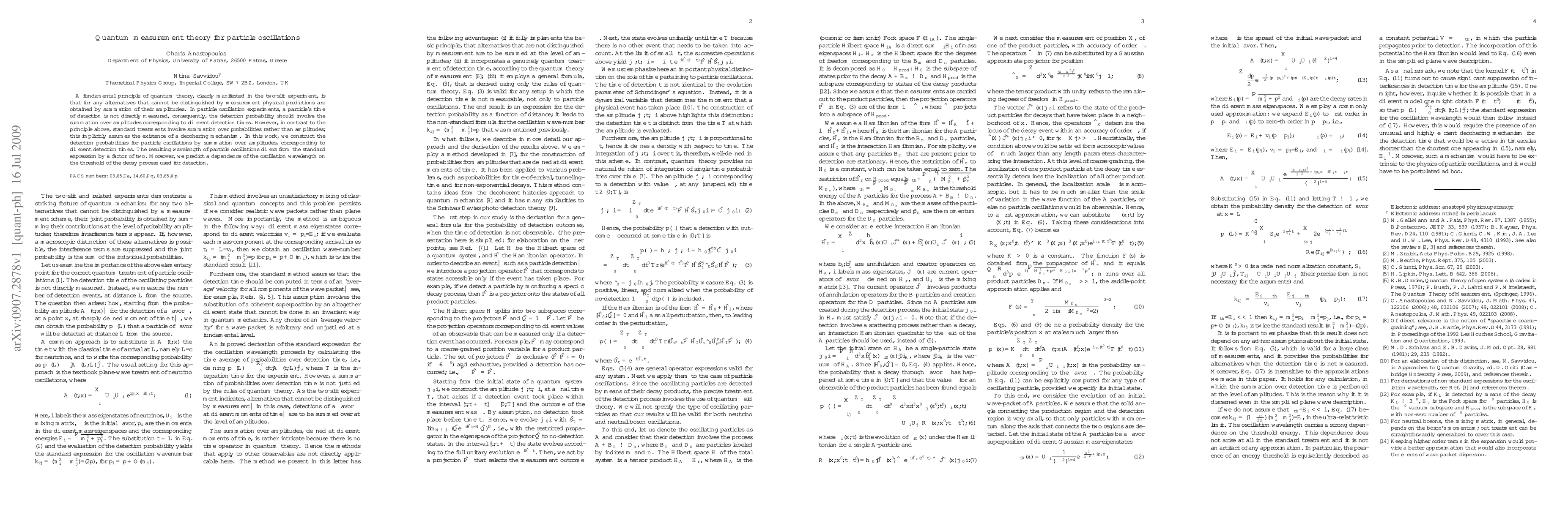 A fundamental principle of quantum theory, clearly manifested in the two-slit experiment, is that for any alternatives that cannot be distinguished by measurement physical predictions are obtained by summation of their amplitudes. In particle oscillation experiments, a particle's time of detection is not directly measured, consequently, the detection probability should involve the summation over amplitudes corresponding to different detection times. However, in contrast to the principle above, standard treatments involve summation over probabilities rather than amplitudes; this implicitly assumes the existence of a decohering mechanism. In this work, we construct the detection probabilities for particle oscillations by summation over amplitudes, corresponding to different detection times. The resulting wavelength of particle oscillations differs from the standard expression by a factor of two. Moreover, we predict a dependence of the oscillation wavelength on the threshold of the decay process used for detection.