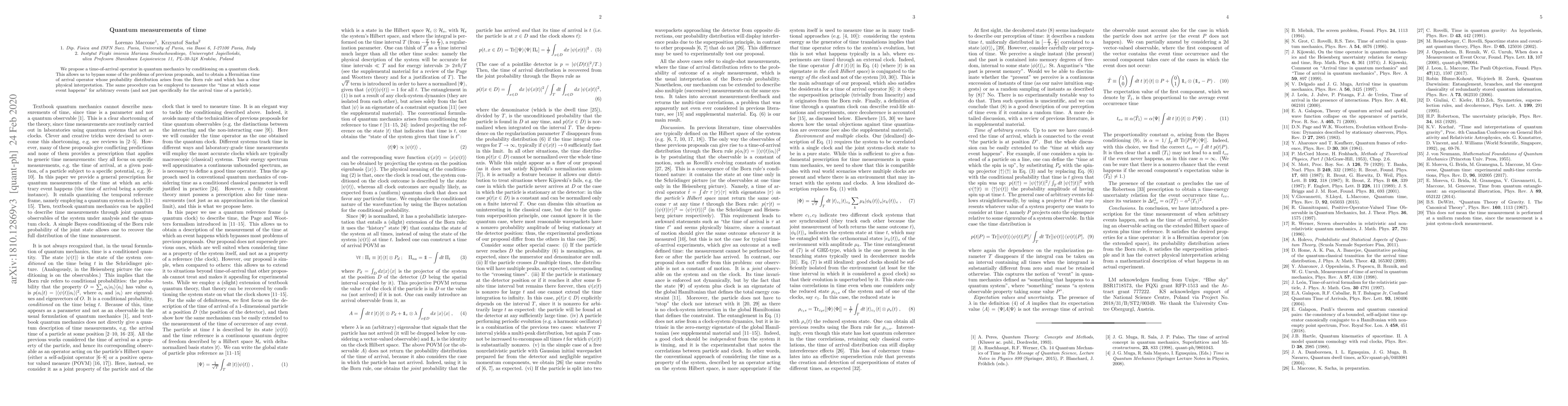 We propose a time-of-arrival operator in quantum mechanics by conditioning on a quantum clock. This allows us to bypass some of the problems of previous proposals, and to obtain a Hermitian time of arrival operator whose probability distribution arises from the Born rule and which has a clear physical interpretation. The same procedure can be employed to measure the "time at which some event happens" for arbitrary events (and not just specifically for the arrival time of a particle).
