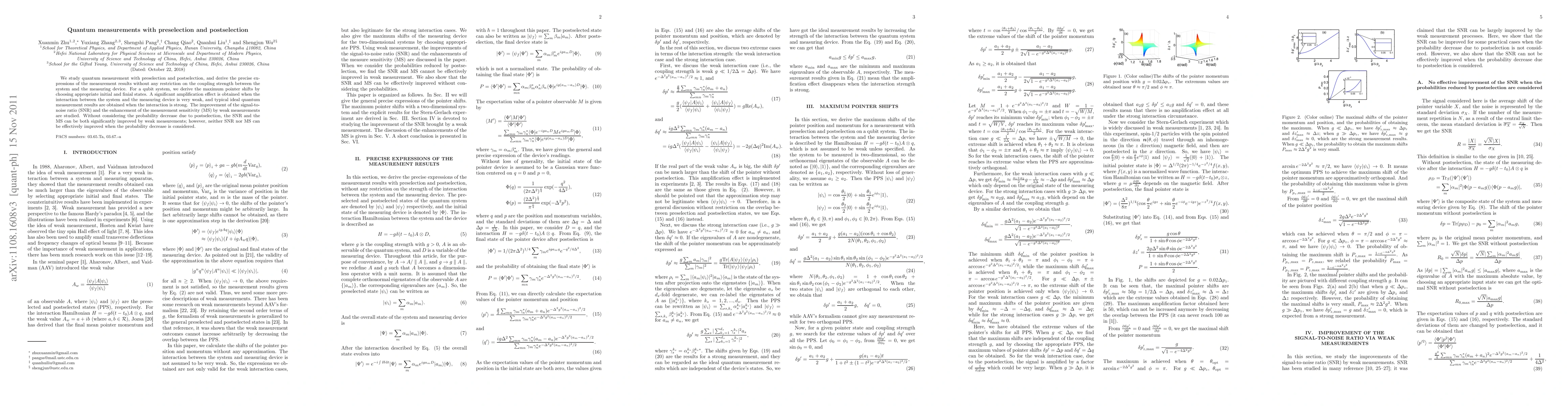 This paper investigates quantum measurements using preselection and postselection techniques, deriving precise results for varying coupling strengths. It finds significant amplification effects in weak interactions, improving signal-to-noise ratio and measurement sensitivity, though these benefits diminish when postselection probability decreases are accounted for.