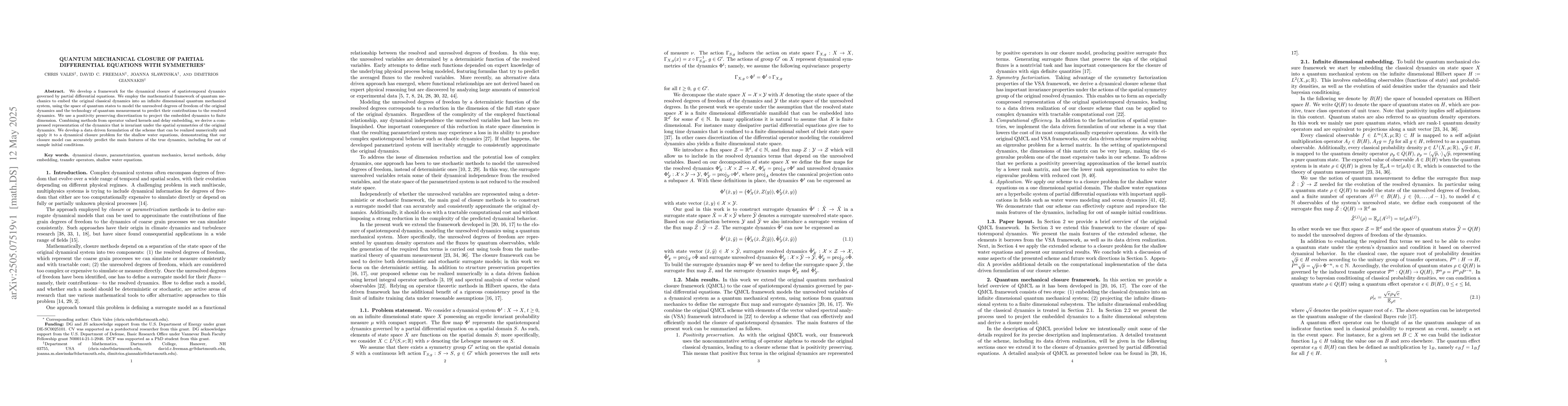 The development of a novel framework that uses quantum mechanics to embed and close partial differential equations, ensuring spatial symmetry invariance through operator-valued kernels and delay embedding techniques.
