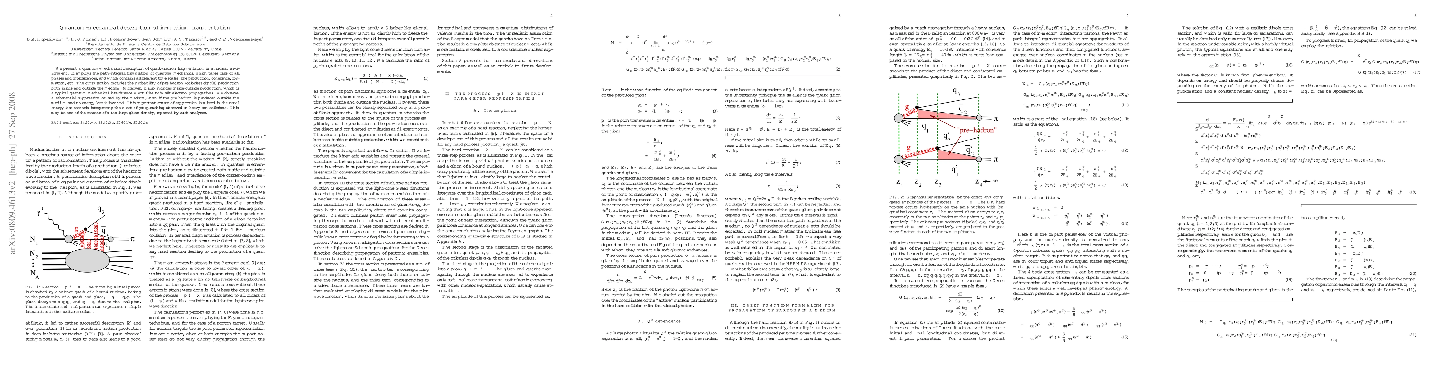 We present a quantum-mechanical description of quark-hadron fragmentation in a nuclear environment. It employs the path-integral formulation of quantum mechanics, which takes care of all phases and interferences, and which contains all relevant time scales, like production, coherence, formation, etc. The cross section includes the probability of pre-hadron (colorless dipole) production both inside and outside the medium. Moreover, it also includes inside-outside production, which is a typical quantum-mechanical interference effect (like twin-slit electron propagation). We observe a substantial suppression caused by the medium, even if the pre-hadron is produced outside the medium and no energy loss is involved. This important source of suppression is missed in the usual energy-loss scenario interpreting the effect of jet quenching observed in heavy ion collisions. This may be one of the reasons of a too large gluon density, reported by such analyzes.