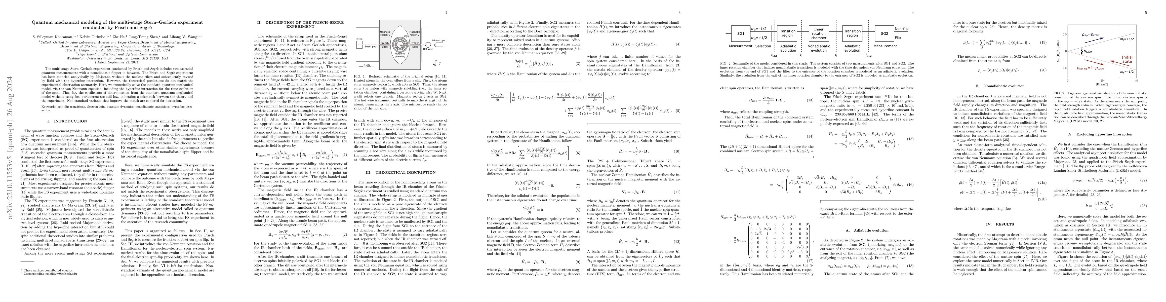 The multi-stage Stern$\unicode{x2013}$Gerlach experiment conducted by Frisch and Segr\`e includes two cascaded quantum measurements with a nonadiabatic flipper in between. The Frisch and Segr\`e experiment has been modeled analytically by Majorana without the nuclear effect and subsequently revised by Rabi with the hyperfine interaction. However, the theoretical predictions do not match the experimental observation accurately. Here, we numerically solve the standard quantum mechanical model, via the von Neumann equation, including the hyperfine interaction for the time evolution of the spin. Thus far, the coefficients of determination from the standard quantum mechanical model without using free parameters are still low, indicating a mismatch between the theory and the experiment. Non-standard variants that improve the match are explored for discussion.