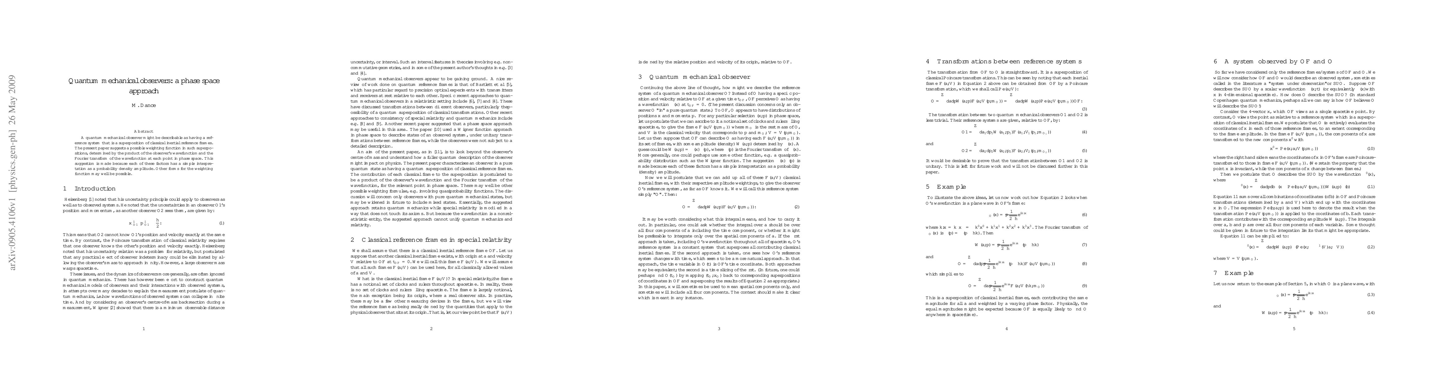A quantum mechanical observer is proposed to have a reference system that is a superposition of classical inertial frames, with a weighting function determined by the product of its wavefunction and the Fourier transform of its wavefunction in phase space. This approach provides a simple interpretation for probability density amplitudes.