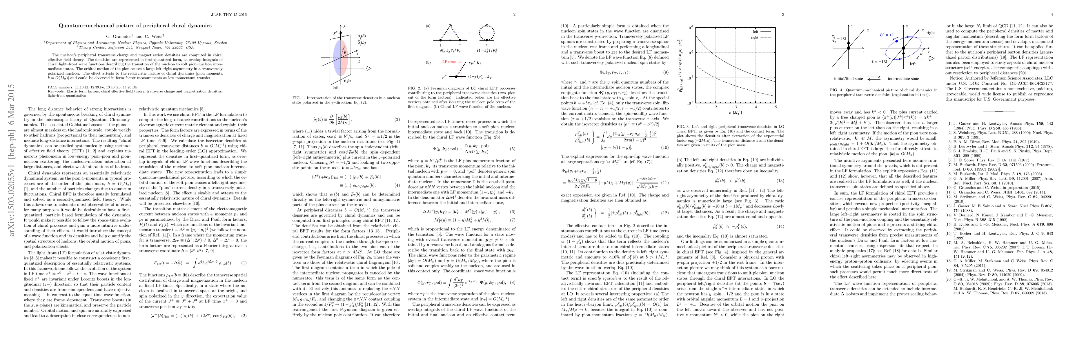 The nucleon's peripheral transverse charge and magnetization densities are computed in chiral effective field theory. The densities are represented in first-quantized form, as overlap integrals of chiral light-front wave functions describing the transition of the nucleon to soft pion-nucleon intermediate states. The orbital motion of the pion causes a large left-right asymmetry in a transversely polarized nucleon. The effect attests to the relativistic nature of chiral dynamics [pion momenta k = O(M_pi)] and could be observed in form factor measurements at low momentum transfer.