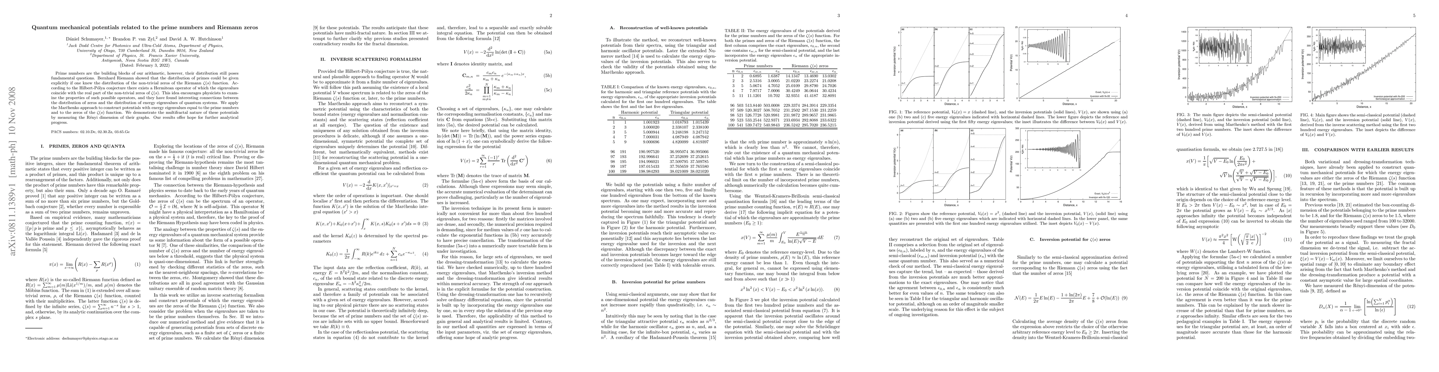 This paper constructs quantum mechanical potentials whose energy eigenvalues correspond to prime numbers and the zeros of the Riemann zeta function, exploring connections between number theory and quantum mechanics. It demonstrates the multifractal nature of these potentials using the Rényi dimension, suggesting potential for further analytical progress.