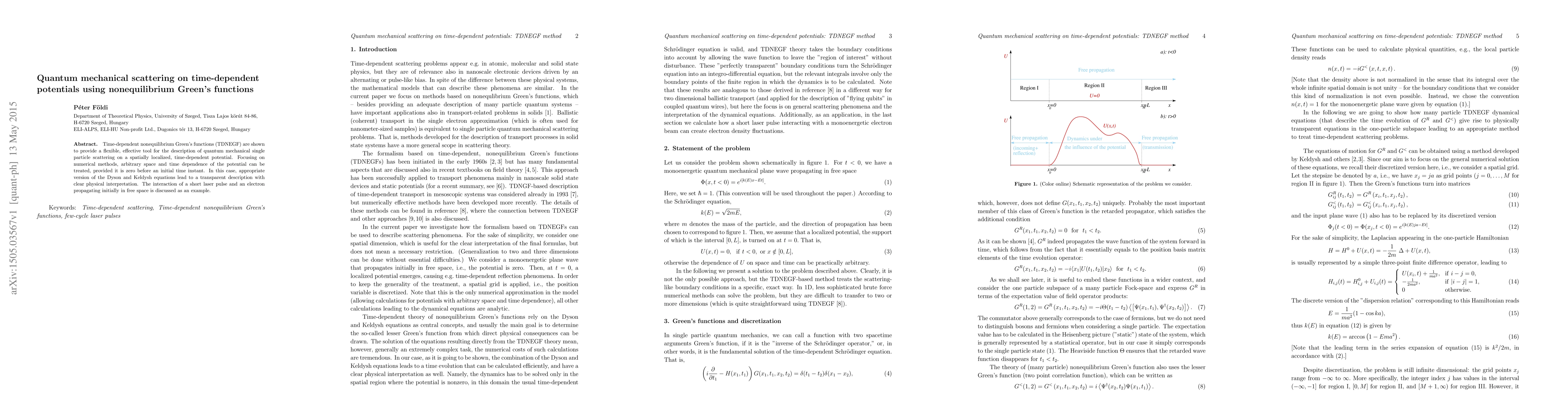 This paper utilizes time-dependent nonequilibrium Green's functions (TDNEGF) to describe quantum mechanical scattering in time-varying potentials, offering a clear physical interpretation and numerical flexibility for arbitrary space and time dependencies. The method is exemplified by analyzing the interaction between a short laser pulse and an electron.