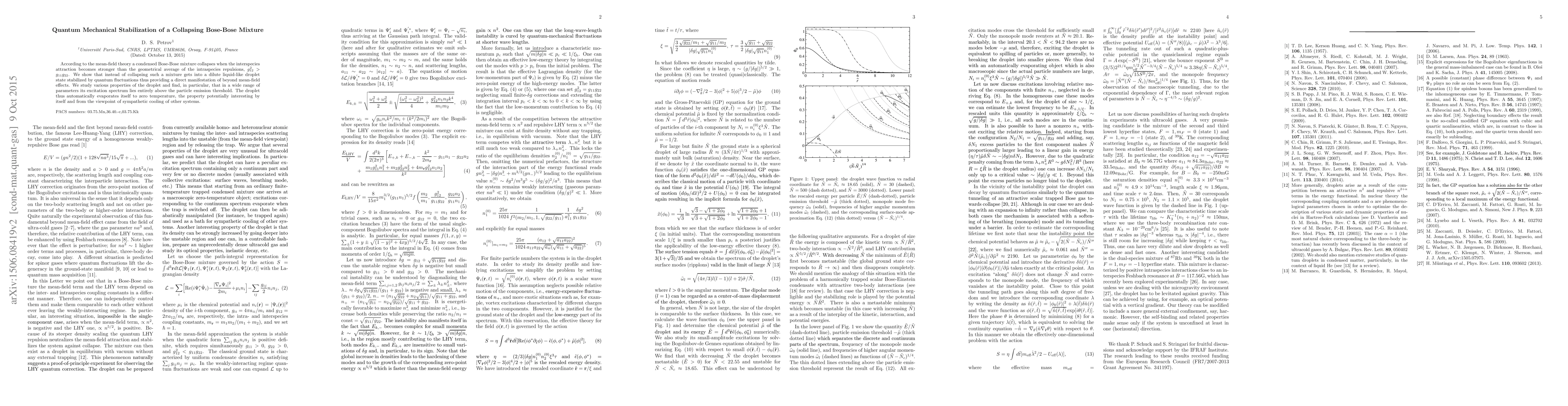 According to the mean-field theory a condensed Bose-Bose mixture collapses when the interspecies attraction becomes stronger than the geometrical average of the intraspecies repulsions, $g_{12}^2>g_{11} g_{22}$. We show that instead of collapsing such a mixture gets into a dilute liquid-like droplet state stabilized by quantum fluctuations thus providing a direct manifestation of beyond mean-field effects. We study various properties of the droplet and find, in particular, that in a wide range of parameters its excitation spectrum lies entirely above the particle emission threshold. The droplet thus automatically evaporates itself to zero temperature, the property potentially interesting by itself and from the viewpoint of sympathetic cooling of other systems.