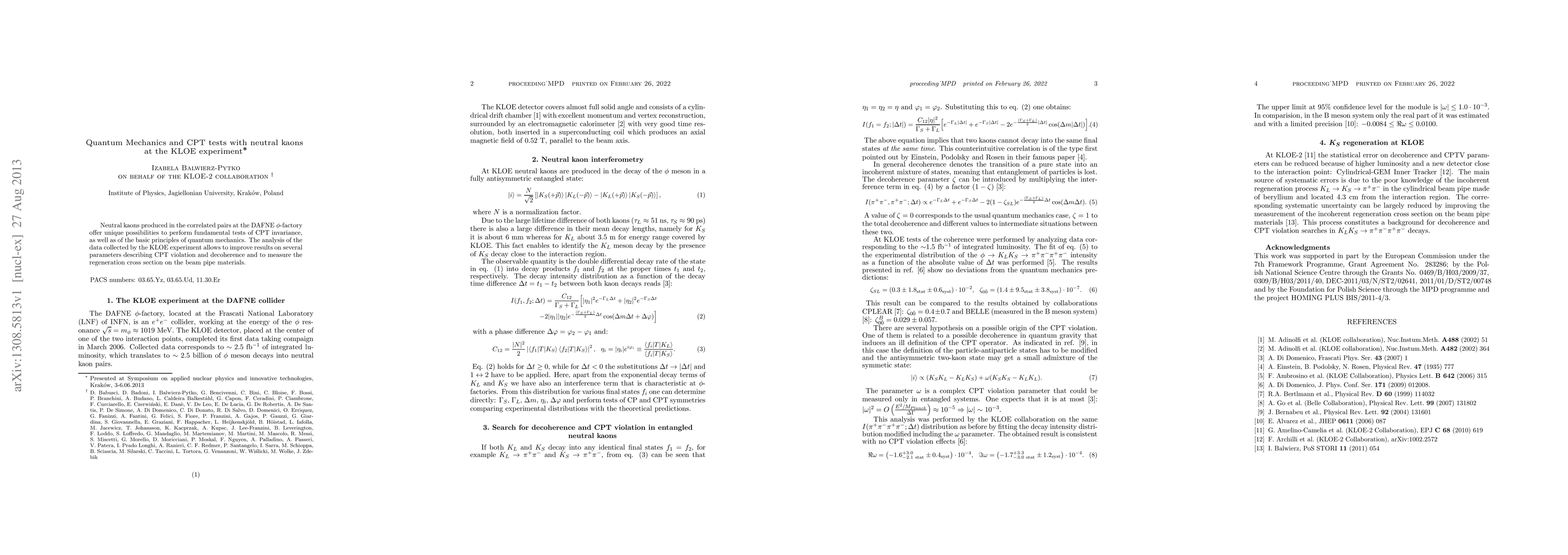 The KLOE experiment at the DAFNE phi-factory uses neutral kaons to test CPT invariance and quantum mechanics principles. The analysis enhances measurements of CPT violation, decoherence, and kaon regeneration cross sections on beam pipe materials.