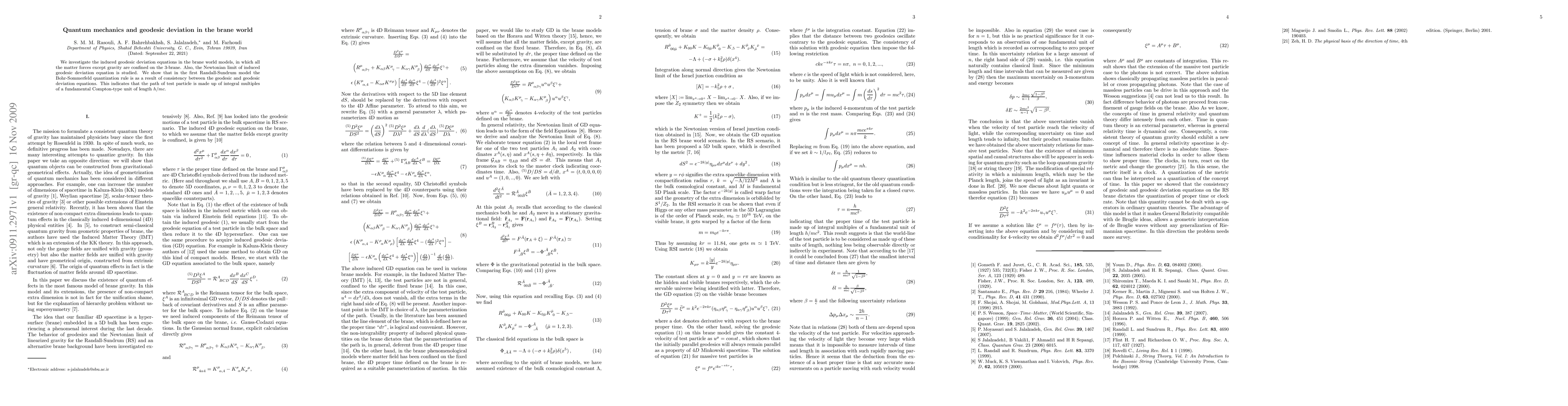 This paper explores the geodesic deviation equations in brane world models, demonstrating that the Bohr-Sommerfeld quantization rule arises from the consistency of geodesic and geodesic deviation equations in the first Randall-Sundrum model, indicating quantized paths of test particles in terms of a fundamental Compton-length unit.