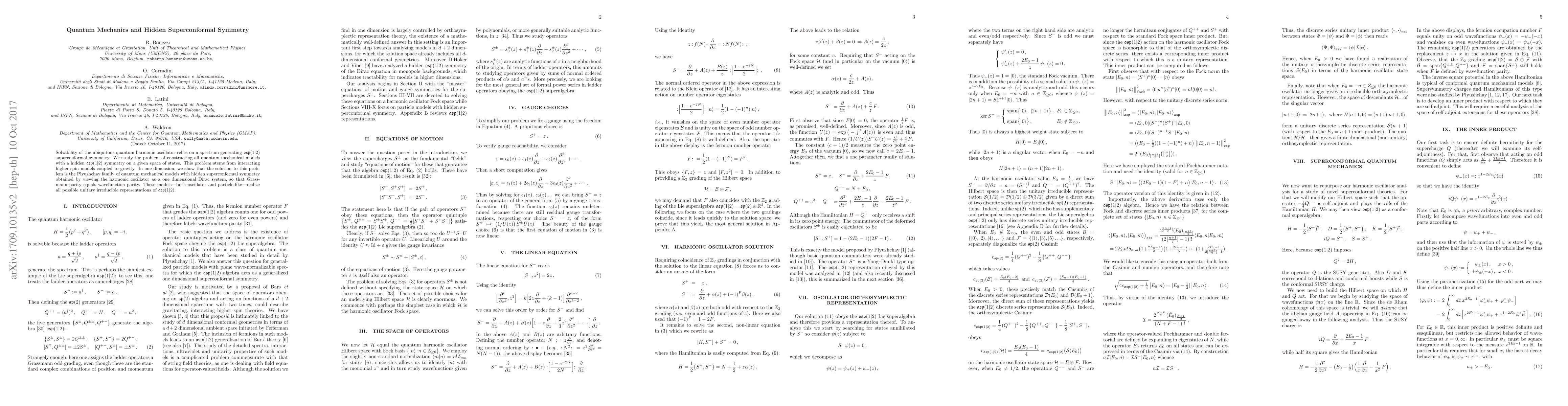 Solvability of the ubiquitous quantum harmonic oscillator relies on a spectrum generating osp(1|2) superconformal symmetry. We study the problem of constructing all quantum mechanical models with a hidden osp(1|2) symmetry on a given space of states. This problem stems from interacting higher spin models coupled to gravity. In one dimension, we show that the solution to this problem is the Plyushchay family of quantum mechanical models with hidden superconformal symmetry obtained by viewing the harmonic oscillator as a one dimensional Dirac system, so that Grassmann parity equals wavefunction parity. These models--both oscillator and particle-like--realize all possible unitary irreducible representations of osp(1|2).