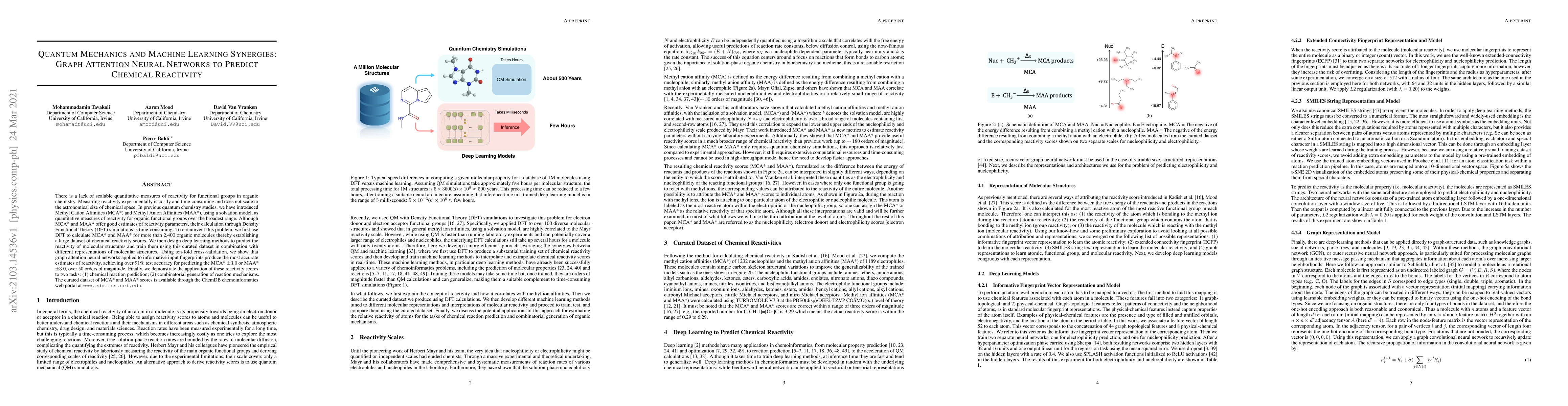 This paper explores the synergy between quantum mechanics and machine learning to predict chemical reactivity using graph attention neural networks. It establishes a large dataset of reactivity scores from Density Functional Theory simulations and trains deep learning models to predict reactivity, achieving over 91% accuracy. The study demonstrates applications in chemical reaction prediction and combinatorial generation of reaction mechanisms.