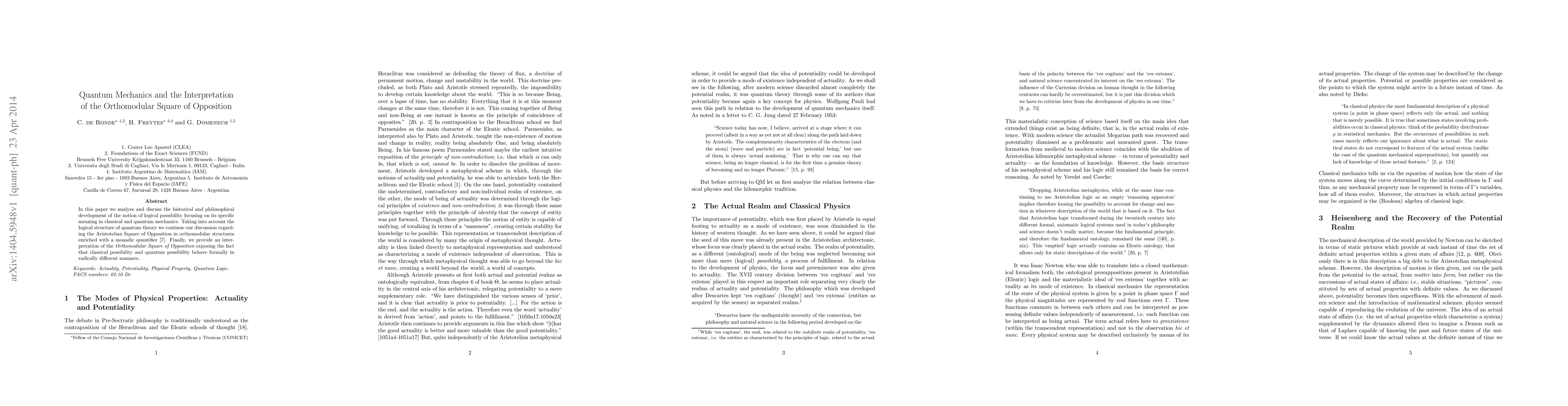 This paper explores the historical and philosophical evolution of logical possibility in classical and quantum mechanics, emphasizing the distinct formal behaviors of classical and quantum possibilities. It interprets the Orthomodular Square of Opposition in quantum theory, revealing fundamental differences between classical and quantum possibilities.