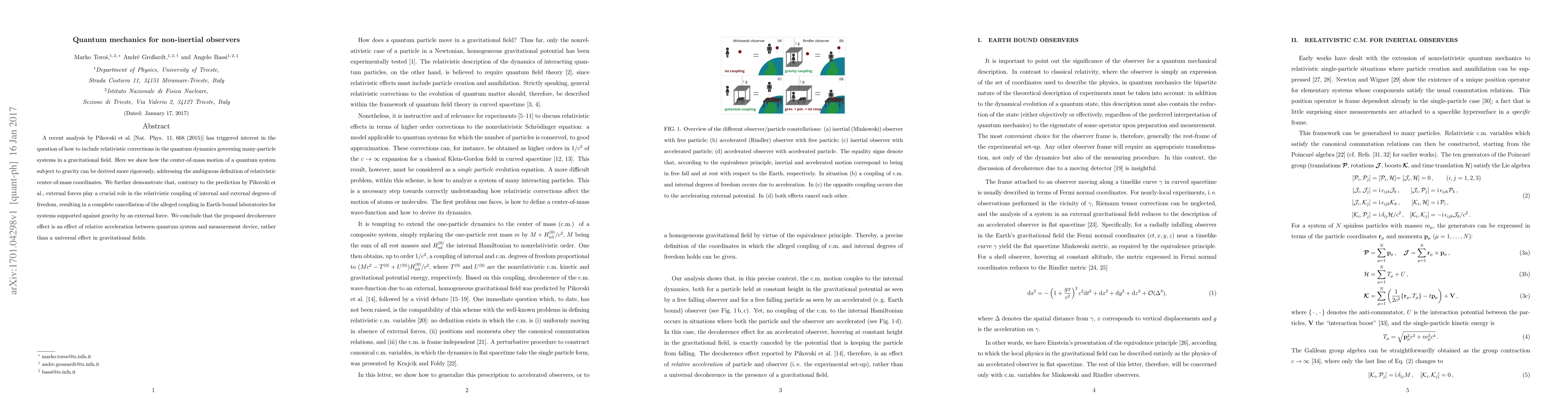 A recent analysis by Pikovski et al. [Nat. Phys. 11, 668 (2015)] has triggered interest in the question of how to include relativistic corrections in the quantum dynamics governing many-particle systems in a gravitational field. Here we show how the center-of-mass motion of a quantum system subject to gravity can be derived more rigorously, addressing the ambiguous definition of relativistic center-of-mass coordinates. We further demonstrate that, contrary to the prediction by Pikovski et al., external forces play a crucial role in the relativistic coupling of internal and external degrees of freedom, resulting in a complete cancellation of the alleged coupling in Earth-bound laboratories for systems supported against gravity by an external force. We conclude that the proposed decoherence effect is an effect of relative acceleration between quantum system and measurement device, rather than a universal effect in gravitational fields.