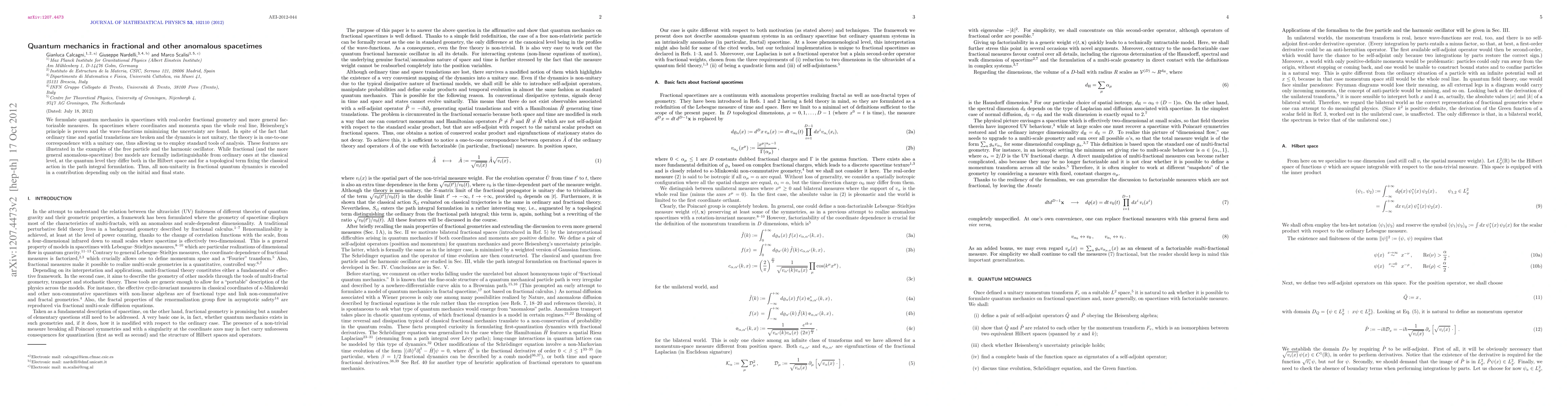 We formulate quantum mechanics in spacetimes with real-order fractional geometry and more general factorizable measures. In spacetimes where coordinates and momenta span the whole real line, Heisenberg's principle is proven and the wave-functions minimizing the uncertainty are found. In spite of the fact that ordinary time and spatial translations are broken and the dynamics is not unitary, the theory is in one-to-one correspondence with a unitary one, thus allowing us to employ standard tools of analysis. These features are illustrated in the examples of the free particle and the harmonic oscillator. While fractional (and the more general anomalous-spacetime) free models are formally indistinguishable from ordinary ones at the classical level, at the quantum level they differ both in the Hilbert space and for a topological term fixing the classical action in the path integral formulation. Thus, all non-unitarity in fractional quantum dynamics is encoded in a contribution depending only on the initial and final state.