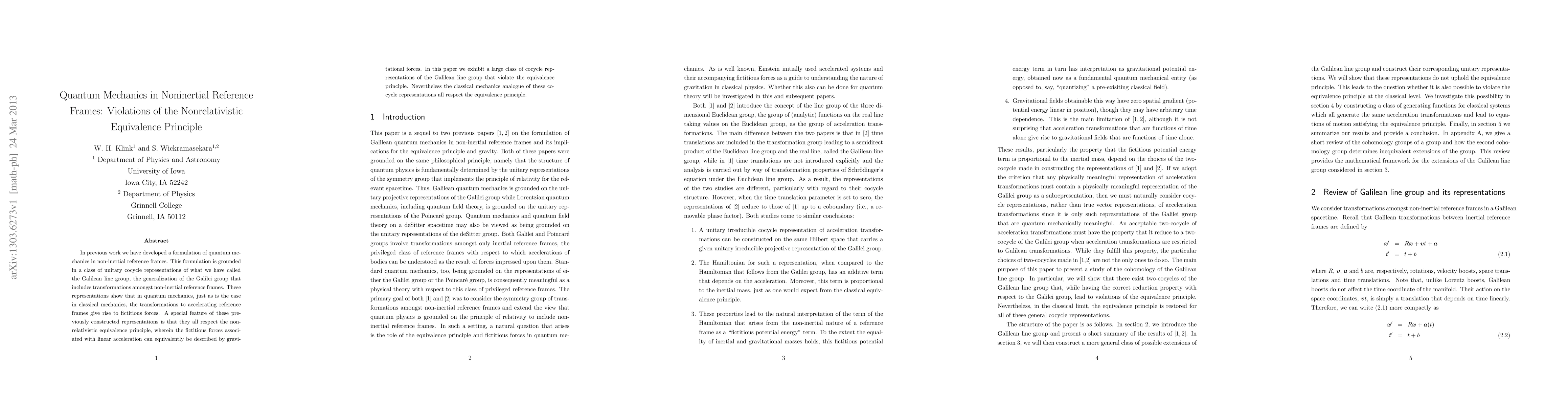This paper extends previous work on quantum mechanics in non-inertial frames, revealing a class of unitary representations that violate the non-relativistic equivalence principle, contrasting with their classical counterparts.
