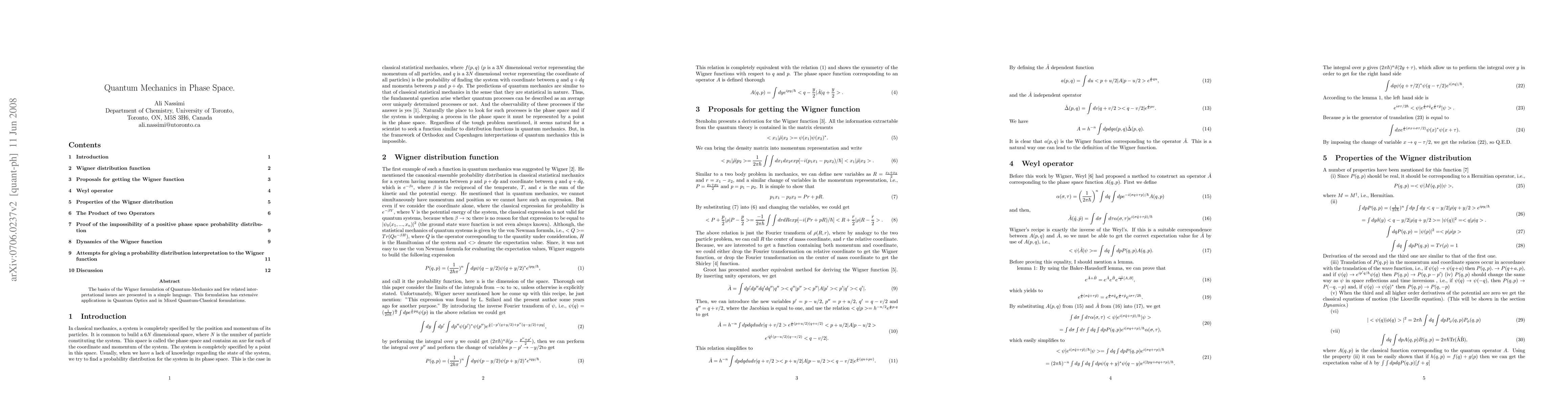 The basics of the Wigner formulation of Quantum-Mechanics and few related interpretational issues are presented in a simple language. This formulation has extensive applications in Quantum Optics and in Mixed Quantum-Classical formulations.