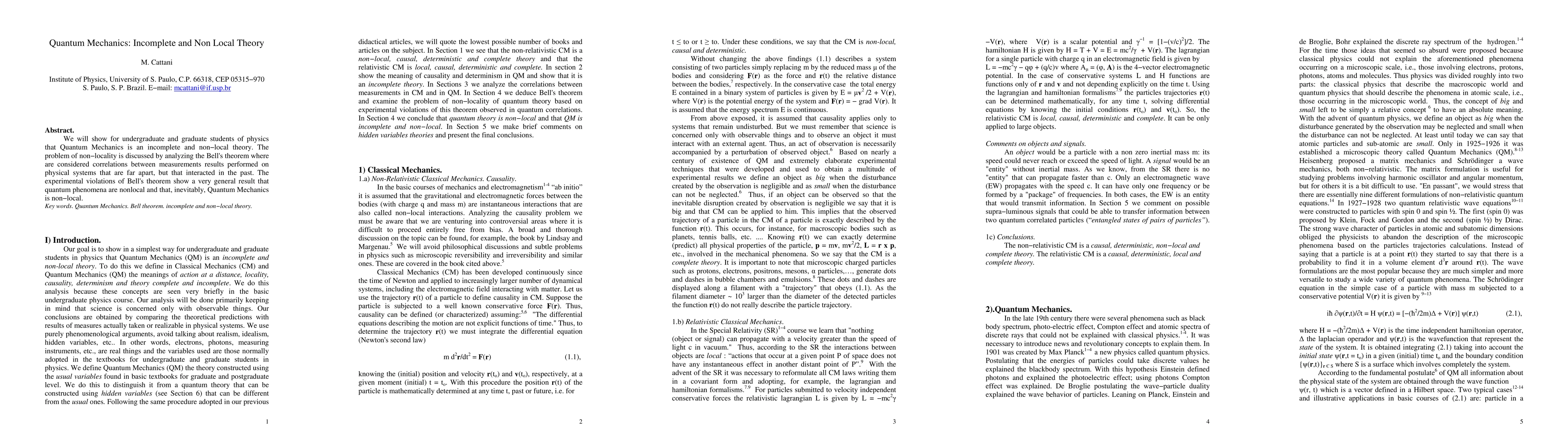 This paper argues that Quantum Mechanics is incomplete and non-local, using Bell's theorem to demonstrate non-local correlations in quantum phenomena, supported by experimental violations that highlight the theory's inherent non-locality.