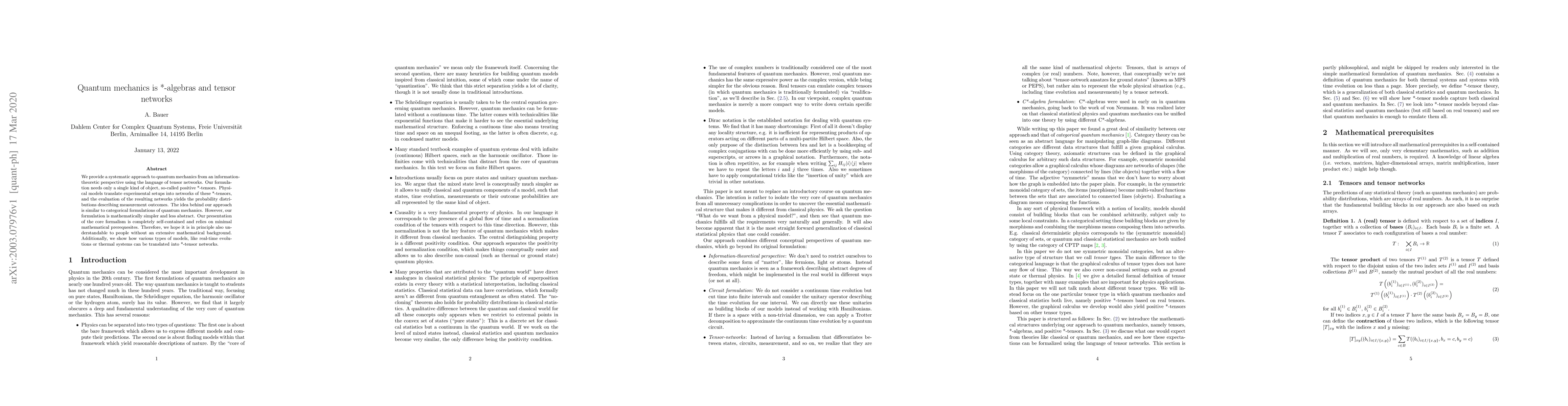 This paper presents a simplified, information-theoretic approach to quantum mechanics using tensor networks, specifically positive *-tensors, to describe physical models and measurement outcomes. The method is mathematically straightforward and accessible, aiming to be understandable even to those without extensive mathematical training.