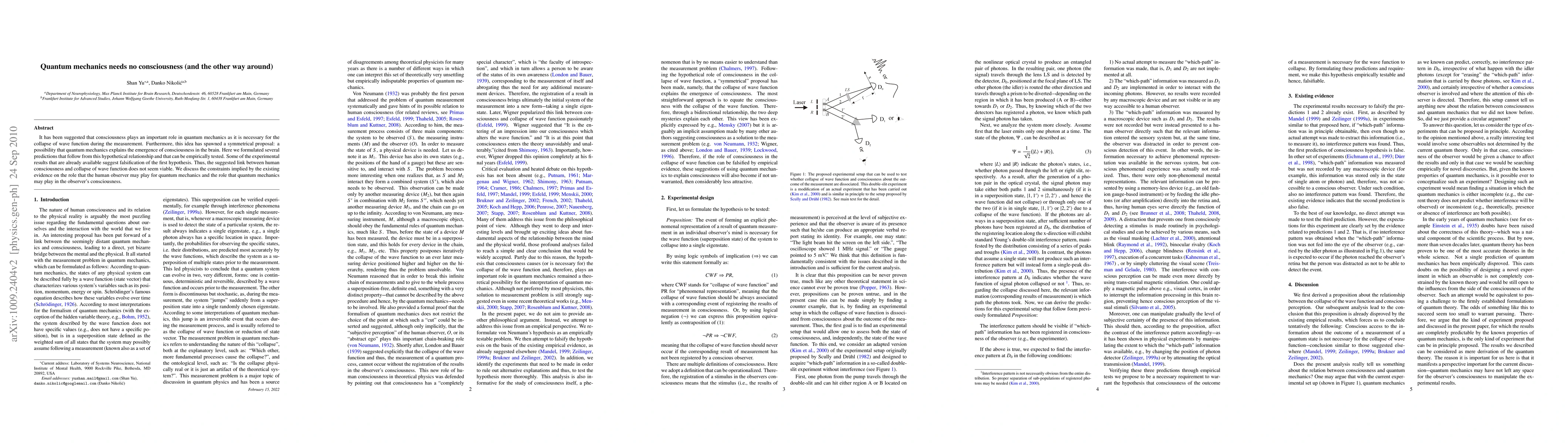 This paper argues against the notion that consciousness is necessary for wave function collapse in quantum mechanics and explores the reciprocal idea that quantum mechanics might explain consciousness. Empirical evidence suggests that consciousness does not play a role in quantum mechanics, while quantum mechanics does not appear to explain the emergence of consciousness.