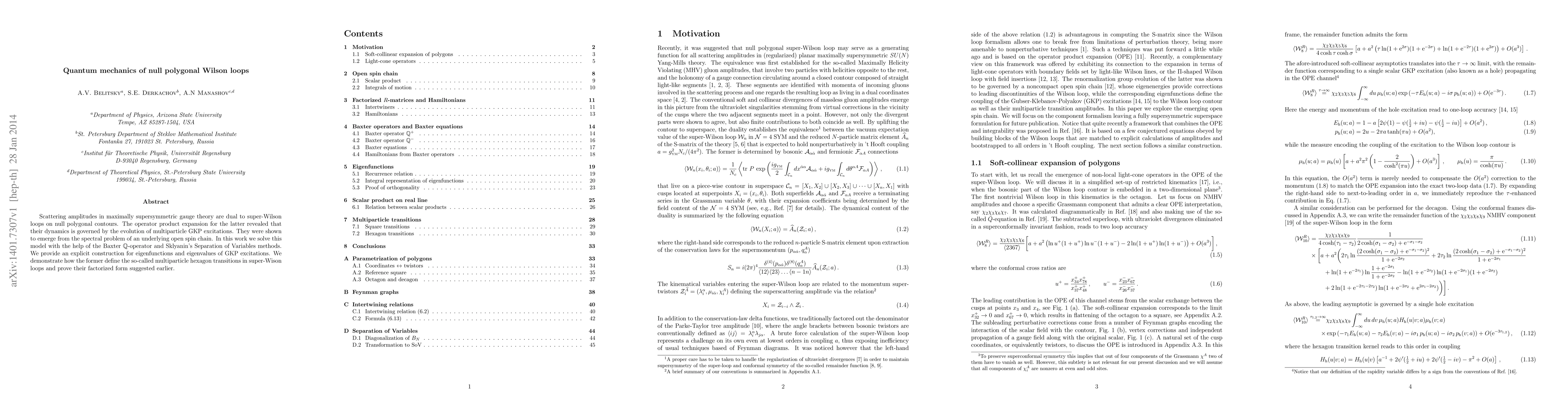 This paper explores the quantum mechanics of null polygonal Wilson loops in maximally supersymmetric gauge theory, revealing their dynamics through the evolution of GKP excitations. Using the Baxter Q-operator and Sklyanin's Separation of Variables, the authors construct explicit eigenfunctions and eigenvalues for these excitations, confirming their role in defining multiparticle hexagon transitions in super-Wilson loops.