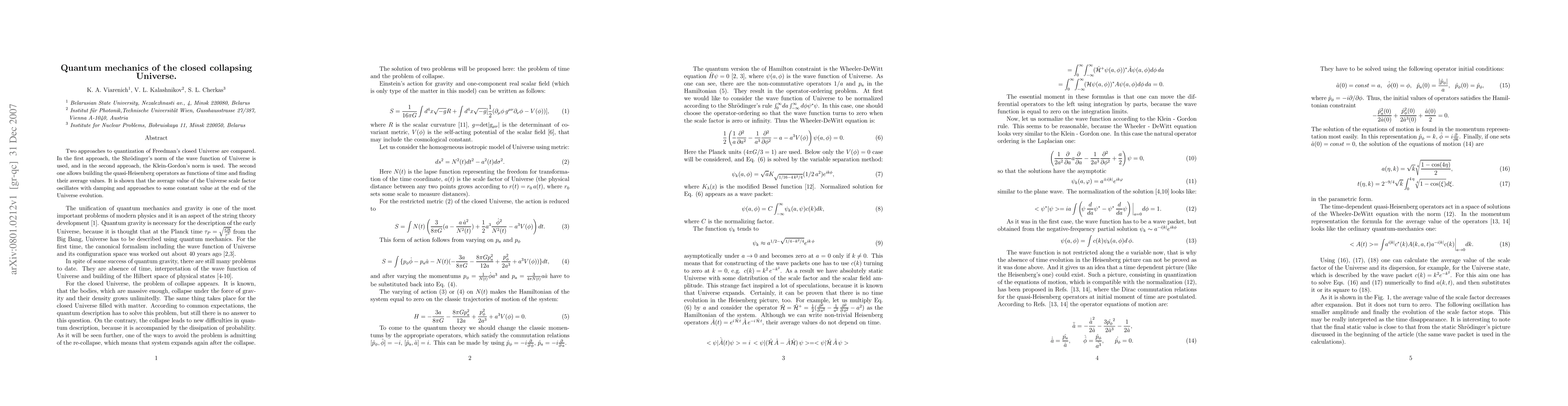 Two approaches to quantization of Freedman's closed Universe are compared. In the first approach, the Shrodinger's norm of the wave function of Universe is used, and in the second approach, the Klein-Gordon's norm is used. The second one allows building the quasi-Heisenberg operators as functions of time and finding their average values. It is shown that the average value of the Universe scale factor oscillates with damping and approaches to some constant value at the end of the Universe evolution.