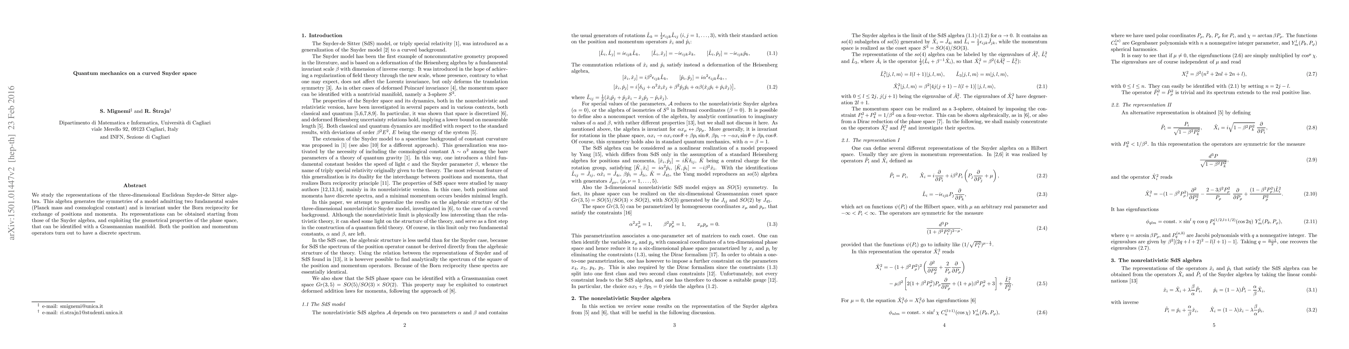 We study the representations of the three-dimensional Euclidean Snyder-de Sitter algebra. This algebra generates the symmetries of a model admitting two fundamental scales (Planck mass and cosmological constant) and is invariant under the Born reciprocity for exchange of positions and momenta. Its representations can be obtained starting from those of the Snyder algebra, and exploiting the geometrical properties of the phase space, that can be identified with a Grassmannian manifold. Both the position and momentum operators turn out to have a discrete spectrum.