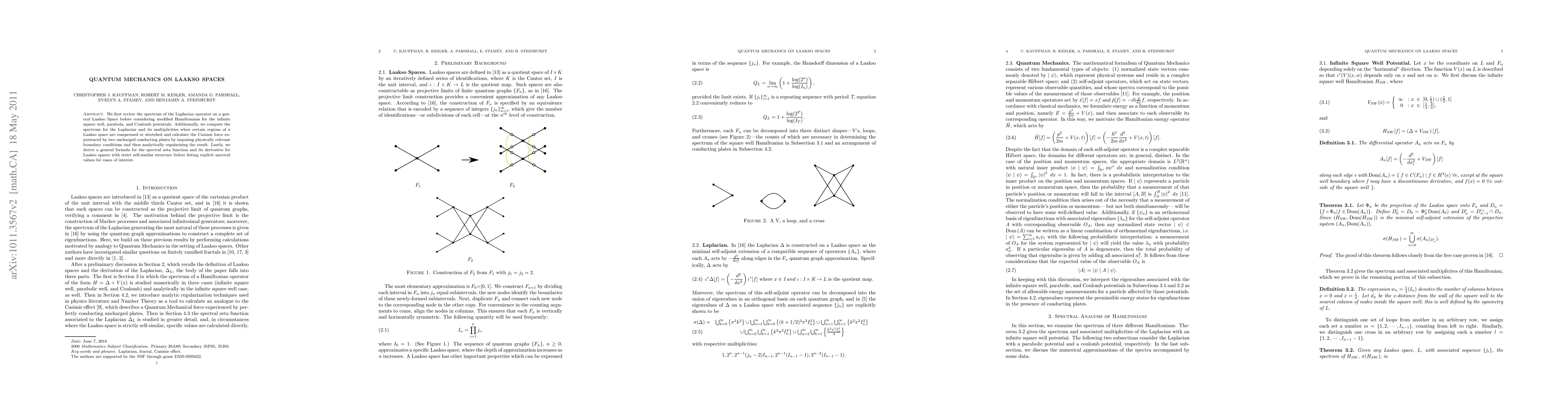 This paper explores quantum mechanics on Laakso spaces, examining the spectrum of the Laplacian and modified Hamiltonians for various potentials. It also computes the spectrum under spatial deformations and calculates the Casimir force for conducting plates, deriving a formula for the spectral zeta function and listing explicit spectral values.