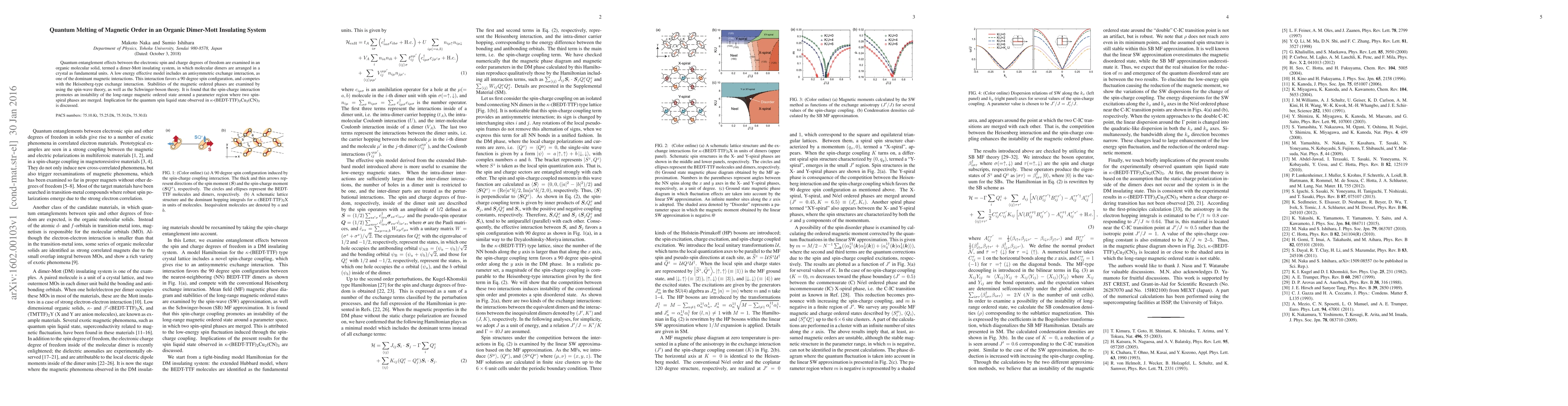 Researchers studied an organic material where quantum entanglement between spin and charge affects its magnetic order, leading to the emergence of a quantum spin liquid state. They found that specific interactions promote instability in long-range magnetic ordering.