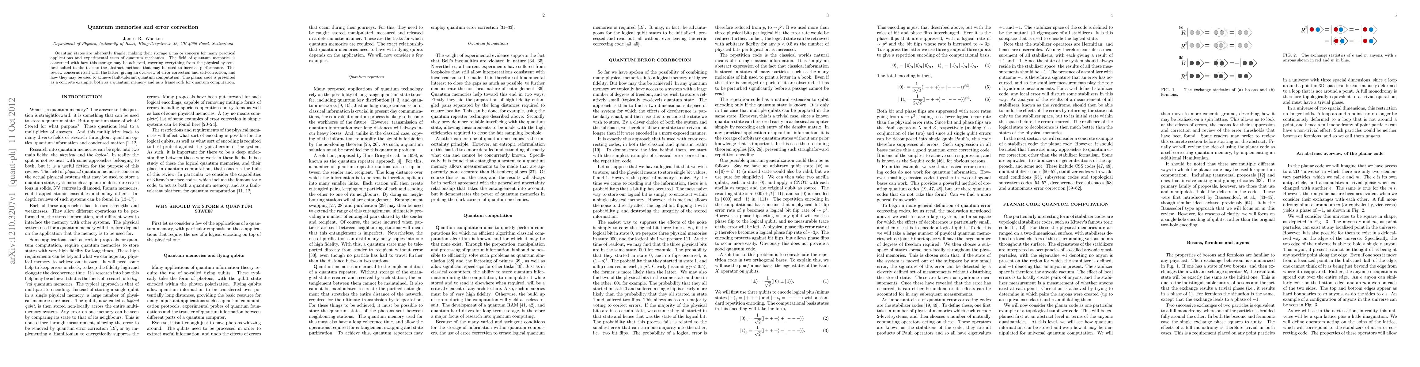 This paper reviews quantum memory storage techniques, focusing on error correction and self-correction methods to achieve fault-tolerant quantum computation, with the planar code serving as a specific example for both quantum memory and computation.