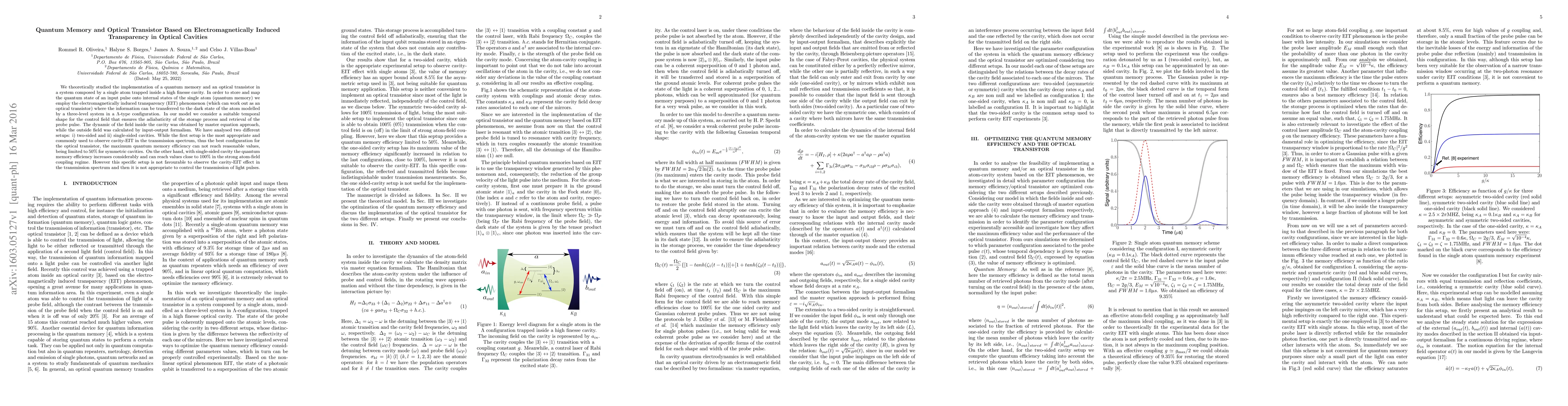 We theoretically studied the implementation of a quantum memory and an optical transistor in a system composed by a single atom trapped inside a high finesse cavity. In order to store and map the quantum state of an input pulse onto internal states of the single atom (quantum memory) we employ the electromagnetically induced transparency (EIT) phenomenon (which can work out as an optical transistor) where the information can be transferred to the dark state of the atom modelled by a three-level system in a {\Lambda}-type configuration. In our model we consider a suitable temporal shape for the control field that ensures the adiabaticity of the storage process and retrieval of the probe pulse. The dynamic of the field inside the cavity was obtained by master equation approach, while the outside field was calculated by input-output formalism. We have analysed two different setups: i) two-sided and ii) single-sided cavities. While the first setup is the most appropriate and commonly used to observe cavity-EIT in the transmission spectrum, thus the best configuration for the optical transistor, the maximum quantum memory efficiency can not reach reasonable values, being limited to 50% for symmetric cavities. On the other hand, with single-sided cavity the quantum memory efficiency increases considerably and can reach values close to 100% in the strong atom-field coupling regime. However this specific setup is not favourable to observe the cavity-EIT effect in the transmission spectrum and then it is not appropriate to control the transmission of light pulses.
