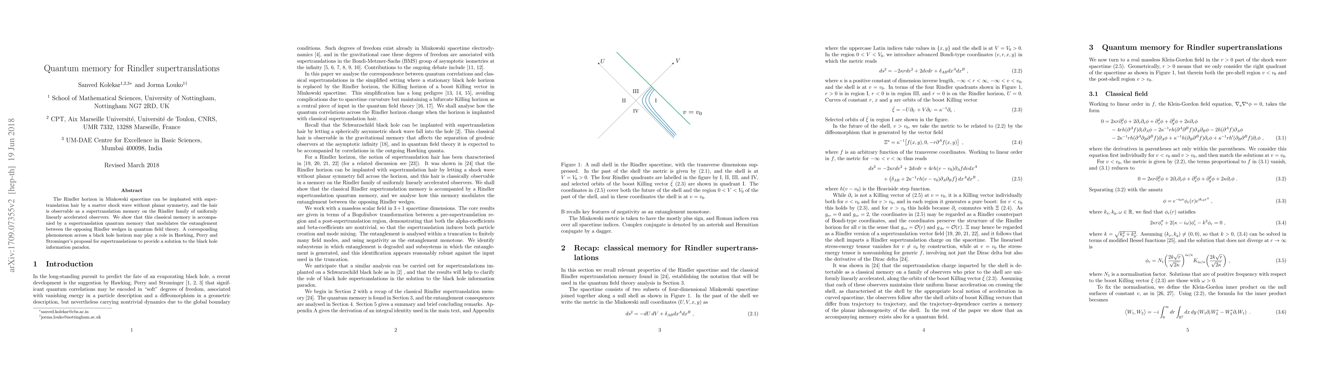 This paper explores how supertranslation hair can be imprinted on a Rindler horizon via a shock wave, creating both classical and quantum memories observable by uniformly accelerated observers. It suggests that this quantum memory could be relevant to resolving the black hole information paradox through supertranslations.