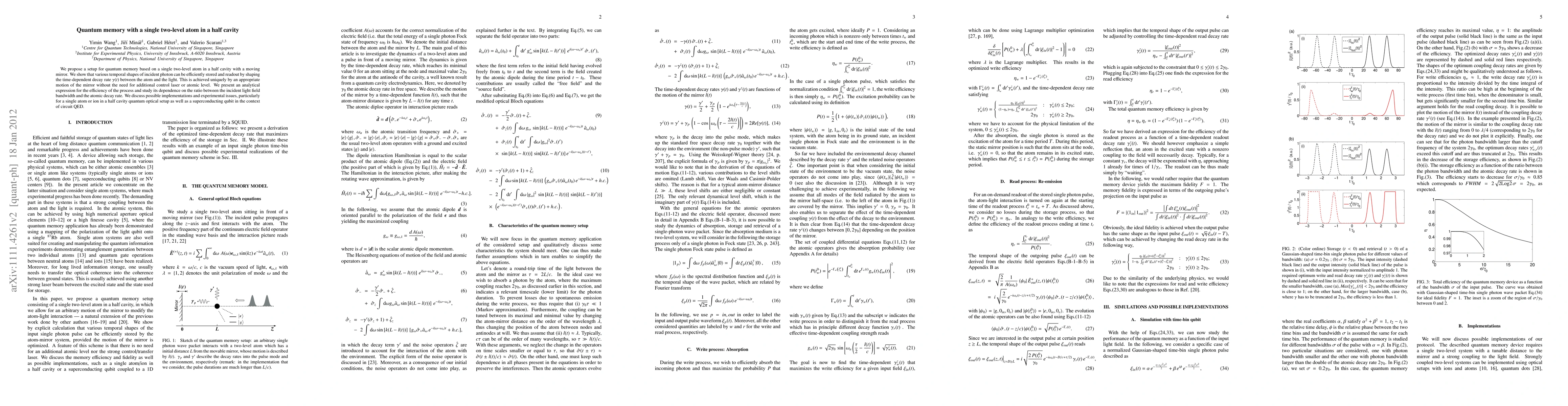 This paper proposes a quantum memory setup utilizing a single two-level atom in a half cavity with a moving mirror, enabling efficient storage and readout of various photon shapes by modulating the atom-light interaction. The method does not require additional control lasers, relying solely on mirror motion, and presents an analytical expression for its efficiency.
