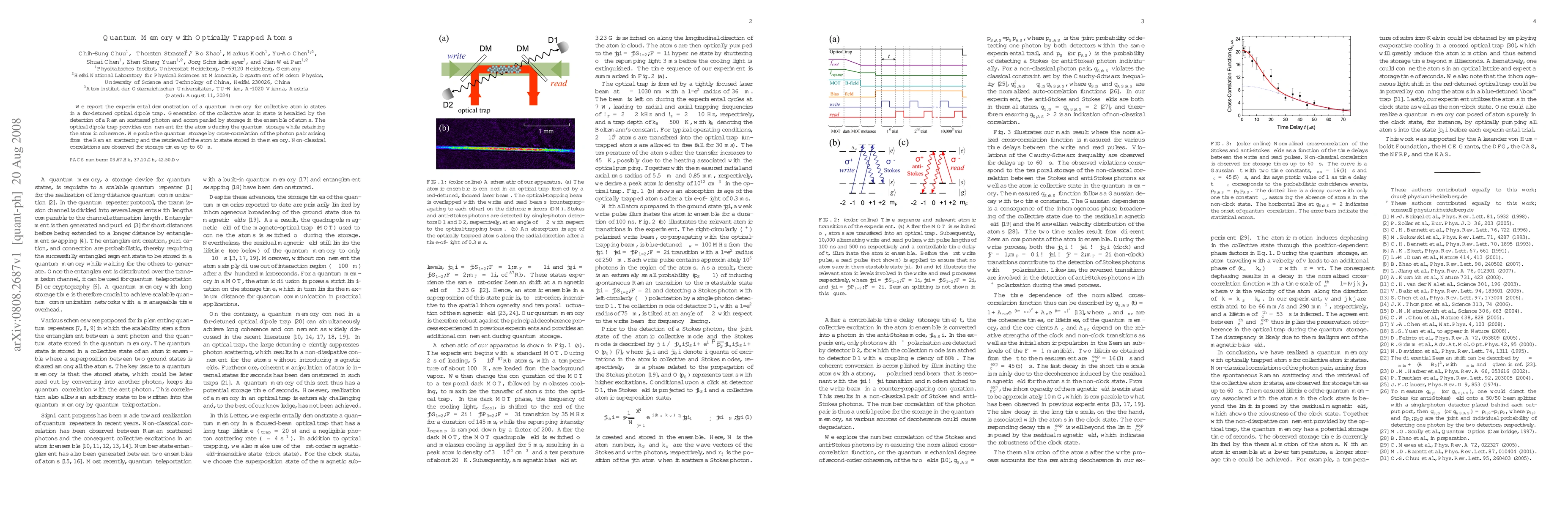 We report the experimental demonstration of a quantum memory for collective atomic states in a far-detuned optical dipole trap. Generation of the collective atomic state is heralded by the detection of a Raman scattered photon and accompanied by storage in the ensemble of atoms. The optical dipole trap provides confinement for the atoms during the quantum storage while retaining the atomic coherence. We probe the quantum storage by cross-correlation of the photon pair arising from the Raman scattering and the retrieval of the atomic state stored in the memory. Non-classical correlations are observed for storage times up to 60 microseconds.