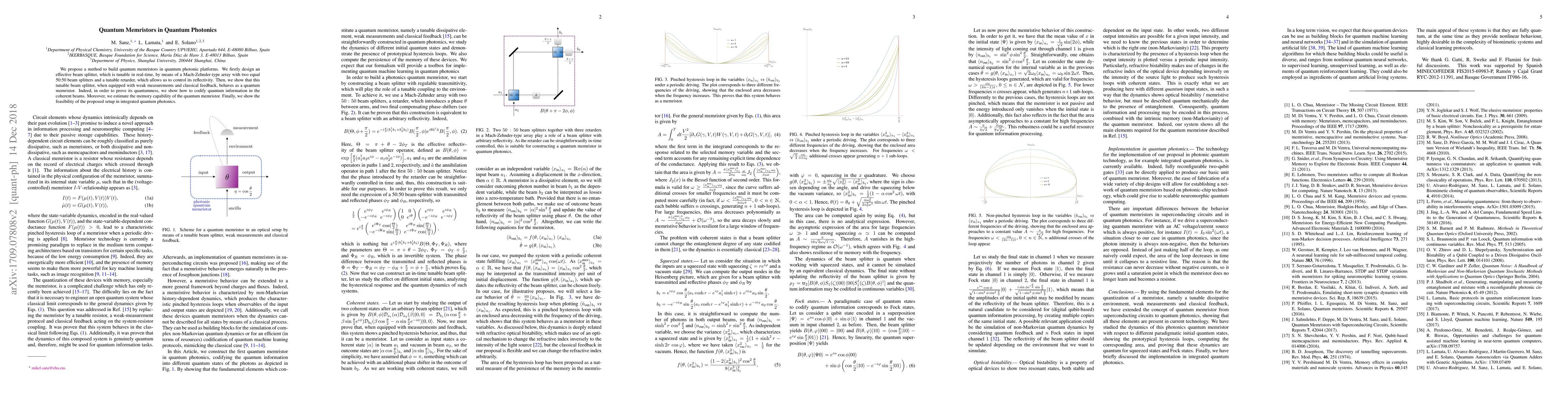 Researchers propose a method to build quantum memristors using tunable beam splitters in quantum photonics, demonstrating the feasibility of integrating quantum information storage into integrated quantum photonics.