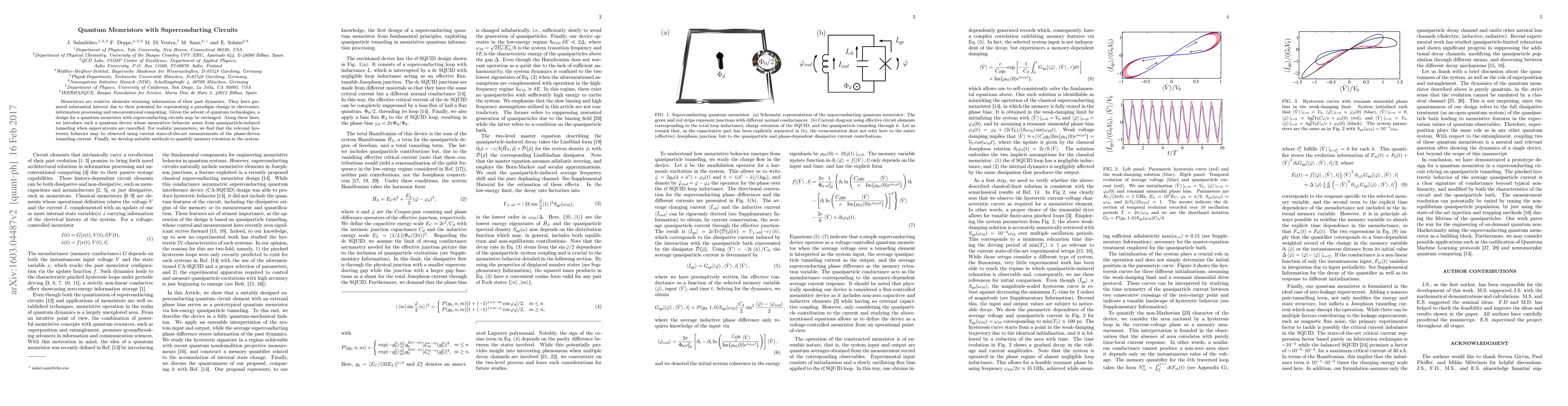 Memristors are resistive elements retaining information of their past dynamics. They have garnered substantial interest due to their potential for representing a paradigm change in electronics, information processing and unconventional computing. Given the advent of quantum technologies, a design for a quantum memristor with superconducting circuits may be envisaged. Along these lines, we introduce such a quantum device whose memristive behavior arises from quasiparticle-induced tunneling when supercurrents are cancelled. For realistic parameters, we find that the relevant hysteretic behavior may be observed using current state-of-the-art measurements of the phase-driven tunneling current. Finally, we develop suitable methods to quantify memory retention in the system.