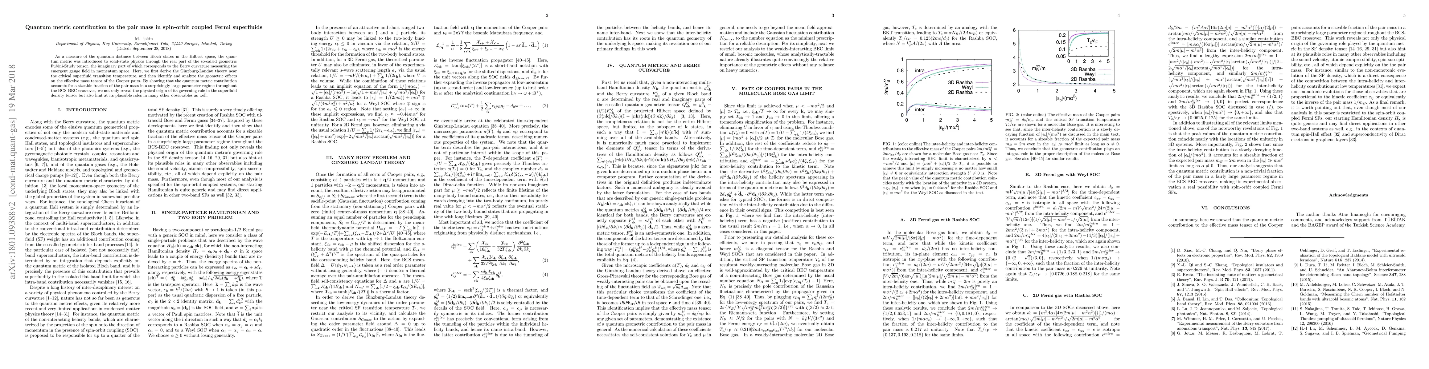 Researchers discovered that a quantum metric significantly contributes to the mass of Cooper pairs in superfluids, particularly in the BCS-BEC crossover region, with its effects appearing across a large parameter range.