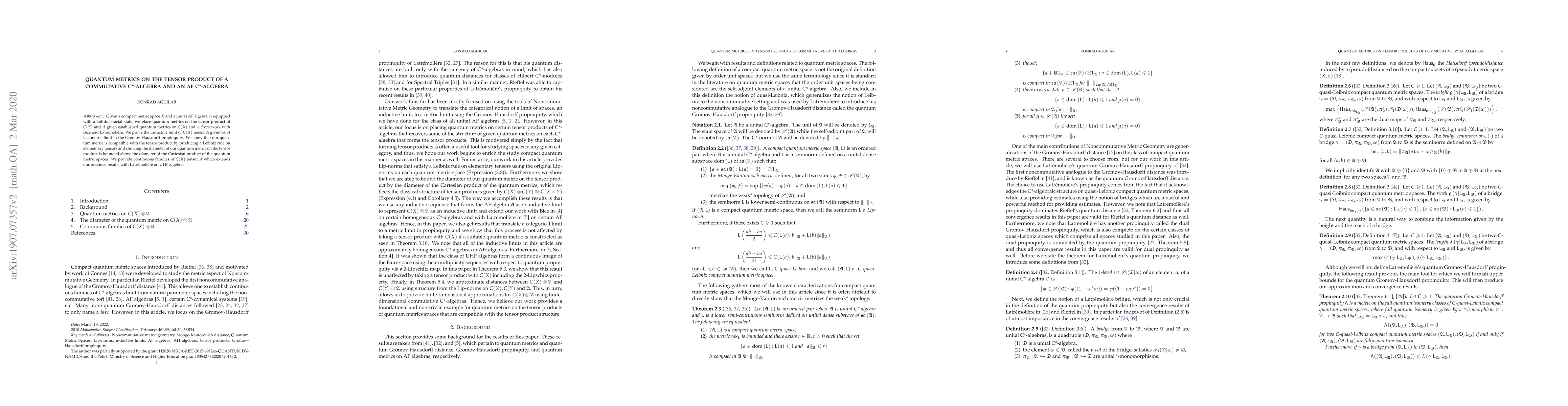 The main technical contribution is a novel approach to approximating the Gromov-Hausdorff distance between two quantum metrics spaces using finite-dimensional approximations.