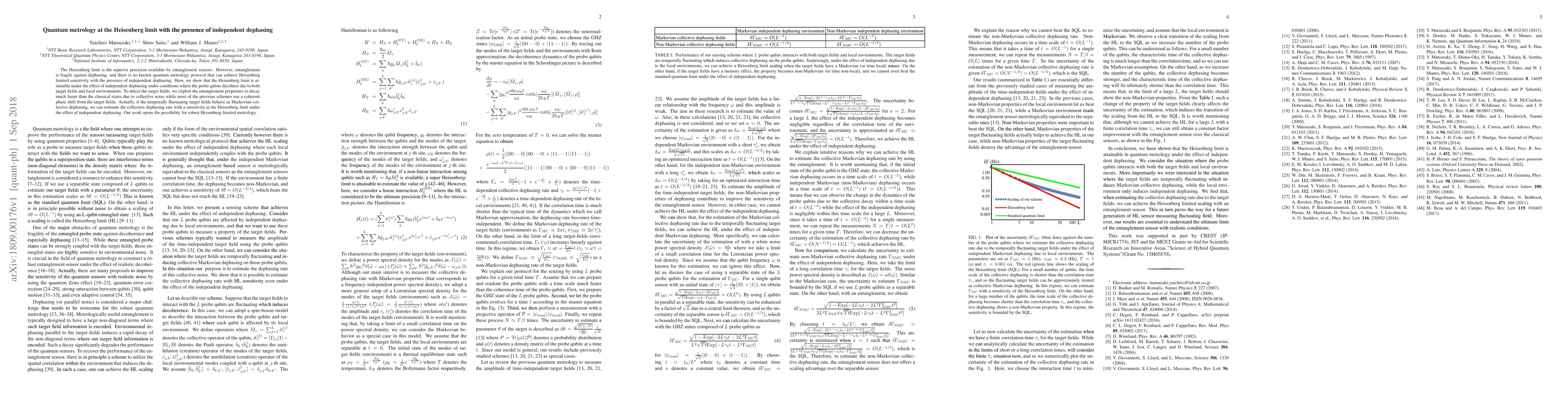 This paper demonstrates a quantum metrology protocol that achieves Heisenberg limit precision despite the presence of independent dephasing, leveraging entanglement properties that decay faster than classical states under collective noise. This breakthrough enables robust Heisenberg-limited metrology even when target fields cause Markovian collective dephasing.