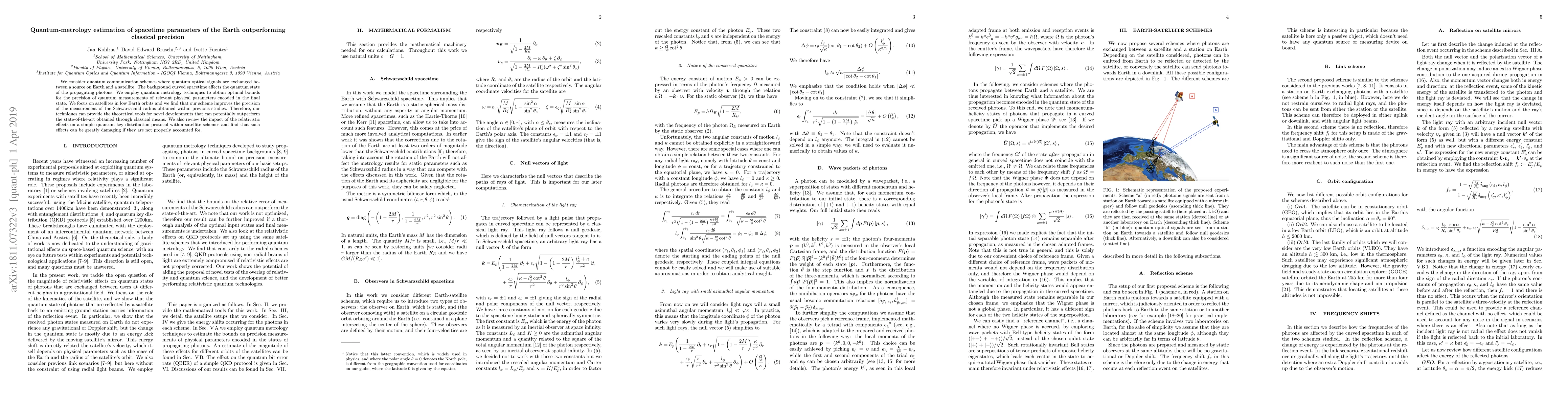 This paper explores quantum communication schemes using quantum optical signals between Earth and satellites, leveraging quantum-metrology to enhance the precision of spacetime parameter measurements, particularly the Schwarzschild radius, surpassing classical methods. It also examines the detrimental effects of relativistic influences on quantum key distribution in satellite systems.