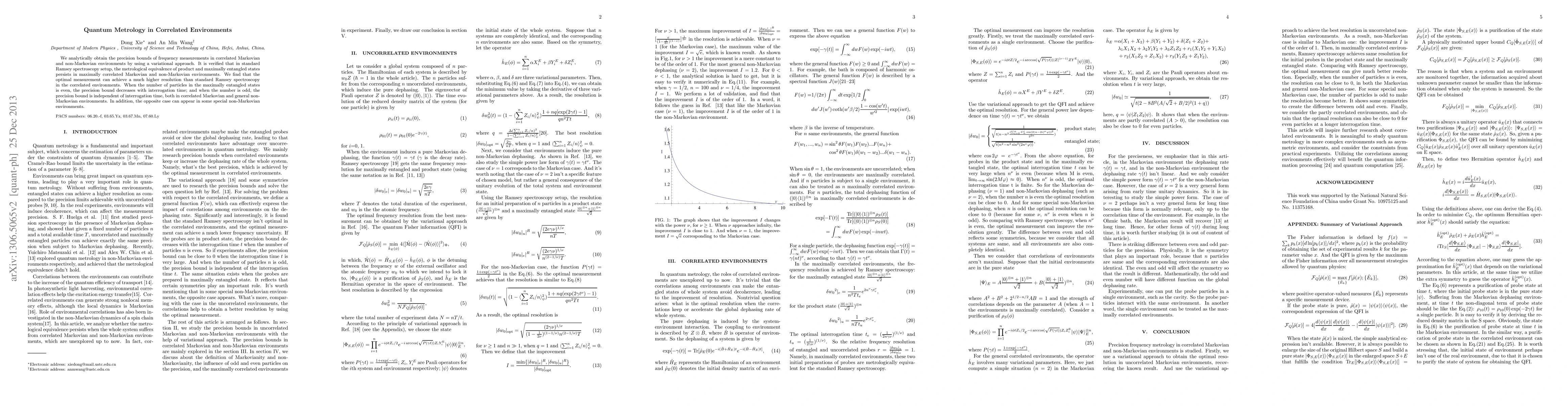 This research derives precision limits for frequency measurements in correlated Markovian and non-Markovian environments using a variational approach. It confirms that entangled states (product and maximally) perform equivalently in highly correlated settings, surpassing standard Ramsey spectroscopy. The study finds that entangled states' precision can exceed that of Ramsey in correlated environments; precision bounds vary with particle number (even or odd) and interrogation time, with unique cases possible in specific non-Markovian settings.