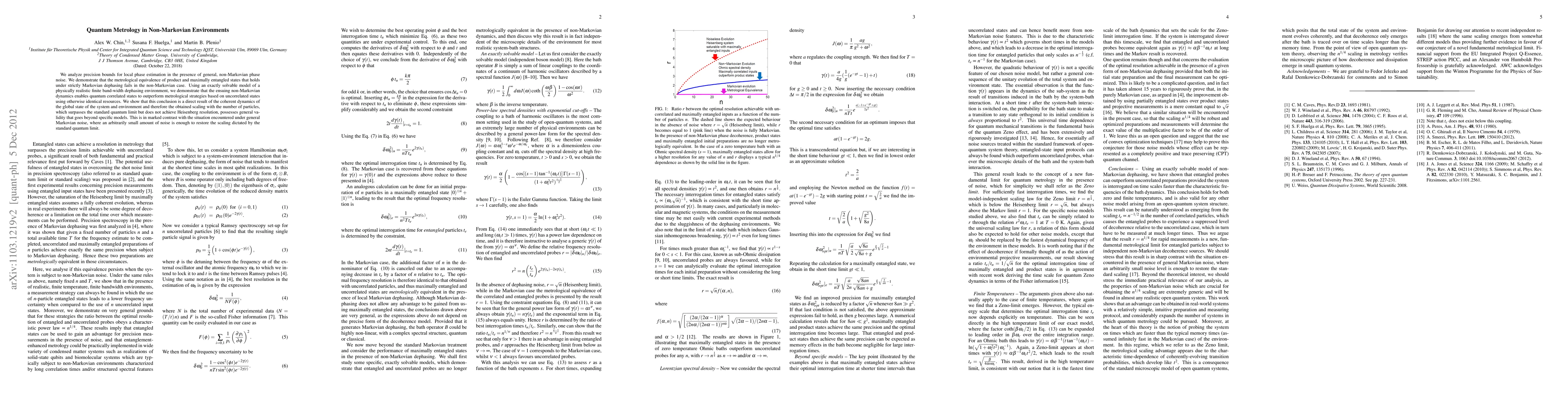 We analyze precision bounds for a local phase estimation in the presence of general, non-Markovian phase noise. We demonstrate that the metrological equivalence of product and maximally entangled states that holds under strictly Markovian dephasing fails in the non-Markovian case. Using an exactly solvable model of a physically realistic finite bandwidth dephasing environment, we demonstrate that the ensuing non-Markovian dynamics enables quantum correlated states to outperform metrological strategies based on uncorrelated states using otherwise identical resources. We show that this conclusion is a direct result of the coherent dynamics of the global state of the system and environment and therefore the obtained scaling with the number of particles, which surpasses the standard quantum limit but does not achieve Heisenberg resolution, possesses general validity that goes beyond specific models. This is in marked contrast with the situation encountered under general Markovian noise, where an arbitrarily small amount of noise is enough to restore the scaling dictated by the standard quantum limit.